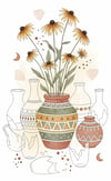 Bring warmth and elegance to your space with this beautiful boho floral wall art bundle. Featuring modern minimalist illustrations of vases filled with delicate flowers, this collection blends neutral earthy tones with soft pastel accents. The designs combine elements of contemporary abstract illustration and botanical line art, making them versatile for home décor, digital design projects, or printable wall art. Perfect for creating a calming, modern aesthetic in living rooms, bedrooms, studios, or offices.