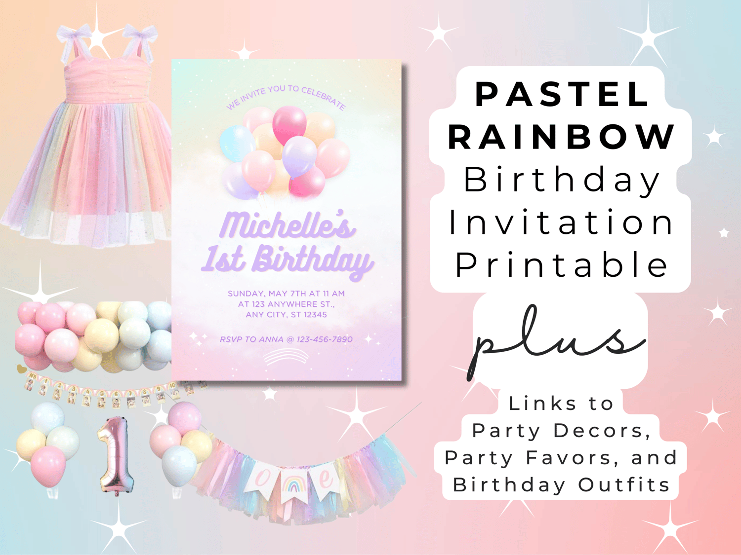 "Pastel Rainbow" Birthday Invitation Printable (With Party Recommendation Links)