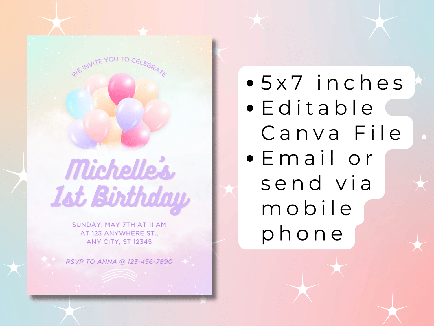 This "Pastel Rainbow" birthday invitation printable also includes a curated list of party essentials that will give you a stress-free birthday for your child.
