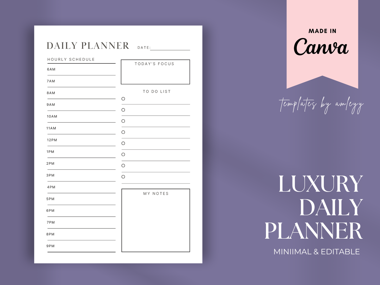 Luxury Daily Planner Template | Elegant & Minimal Canva Editable Schedule | Printable Productivity Planner | Classy Daily Organizer PDF