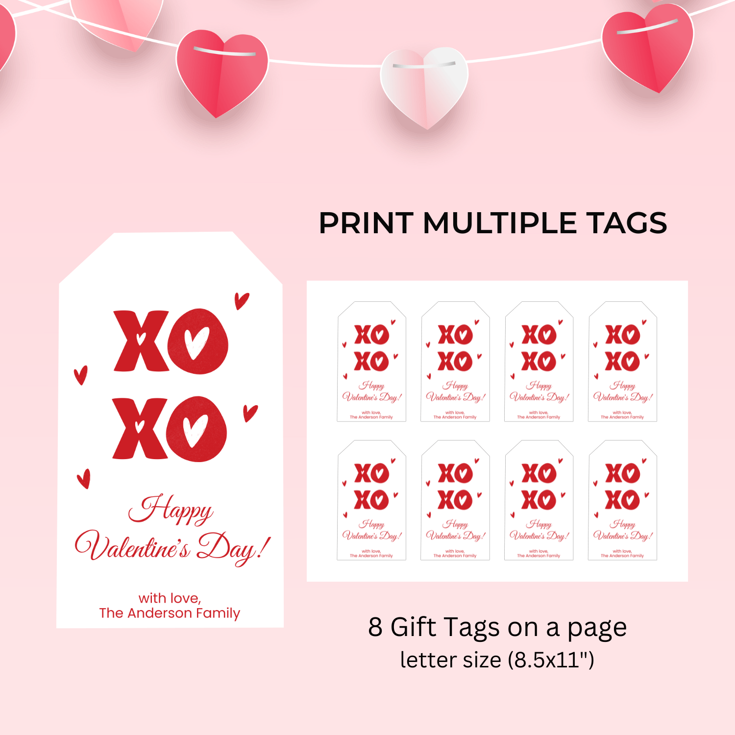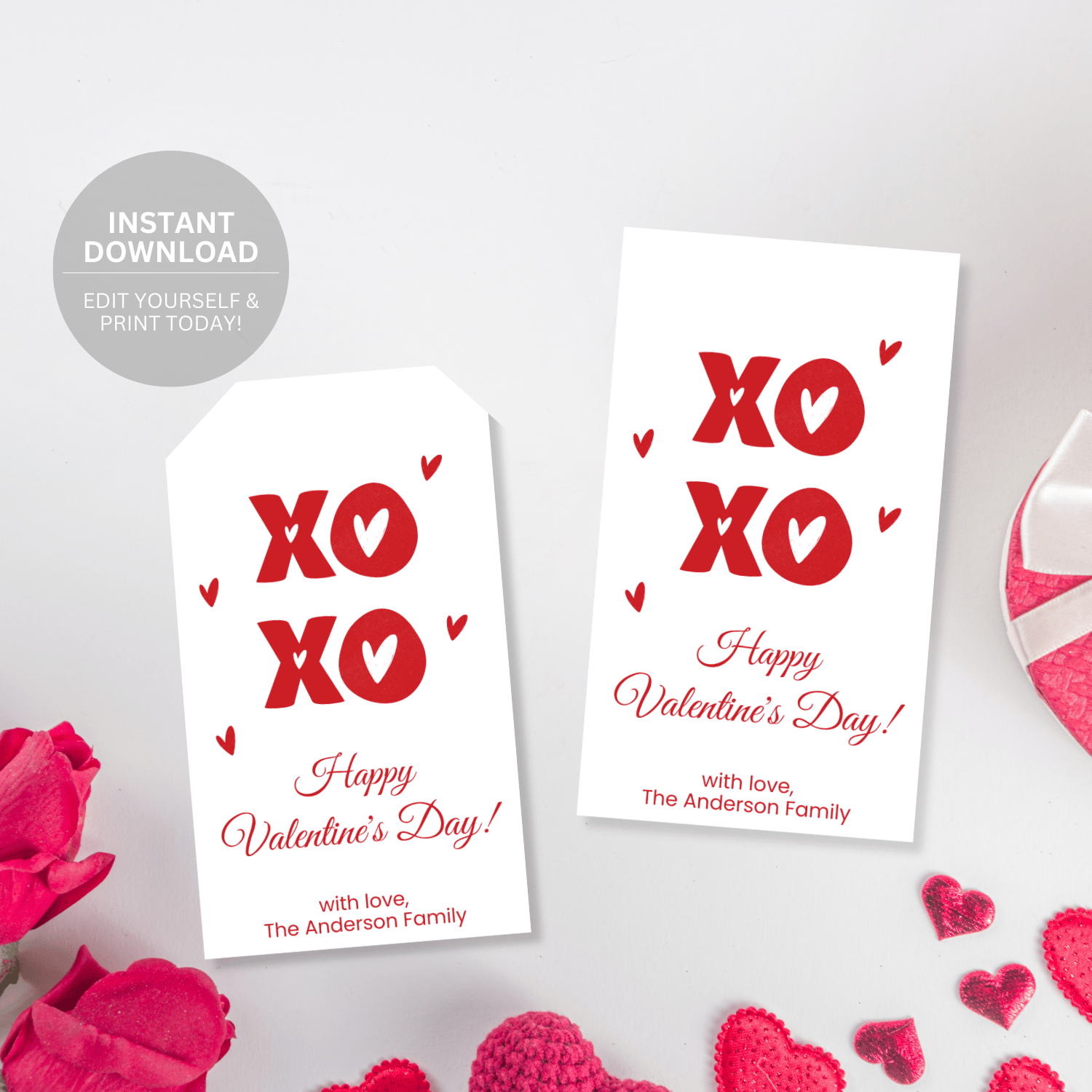 VT019 XO Heart Valentine Gift Tag Cute Minimal Design | Canva Valentine Gift Tag | Instant Download