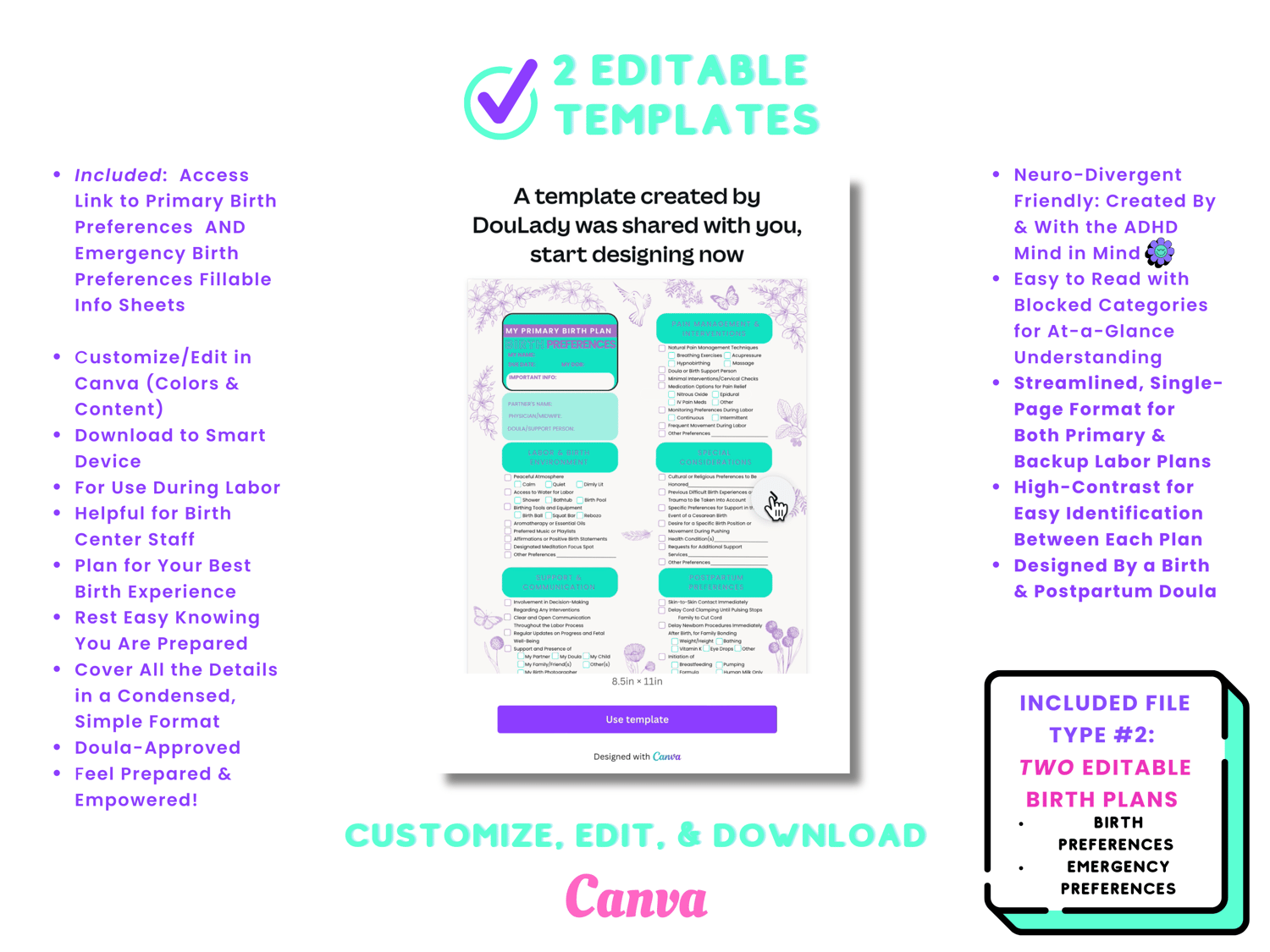- Personalization Made Easy: Customize colors and content in Canva to make your birth plan uniquely yours.