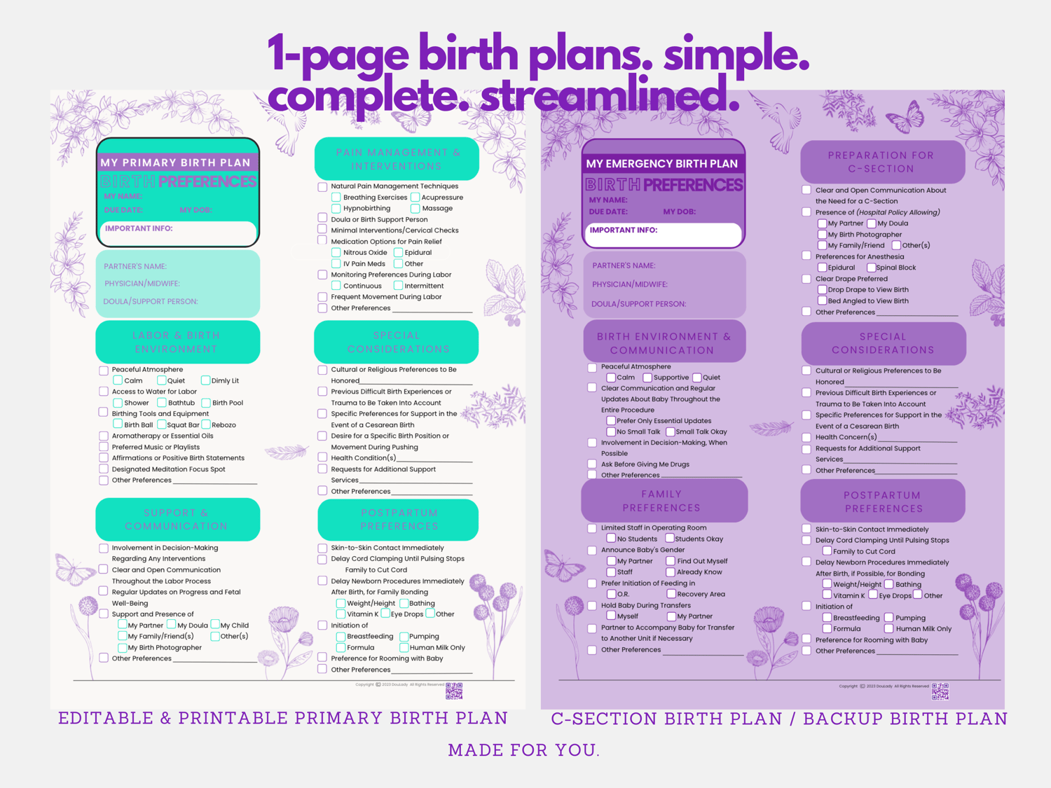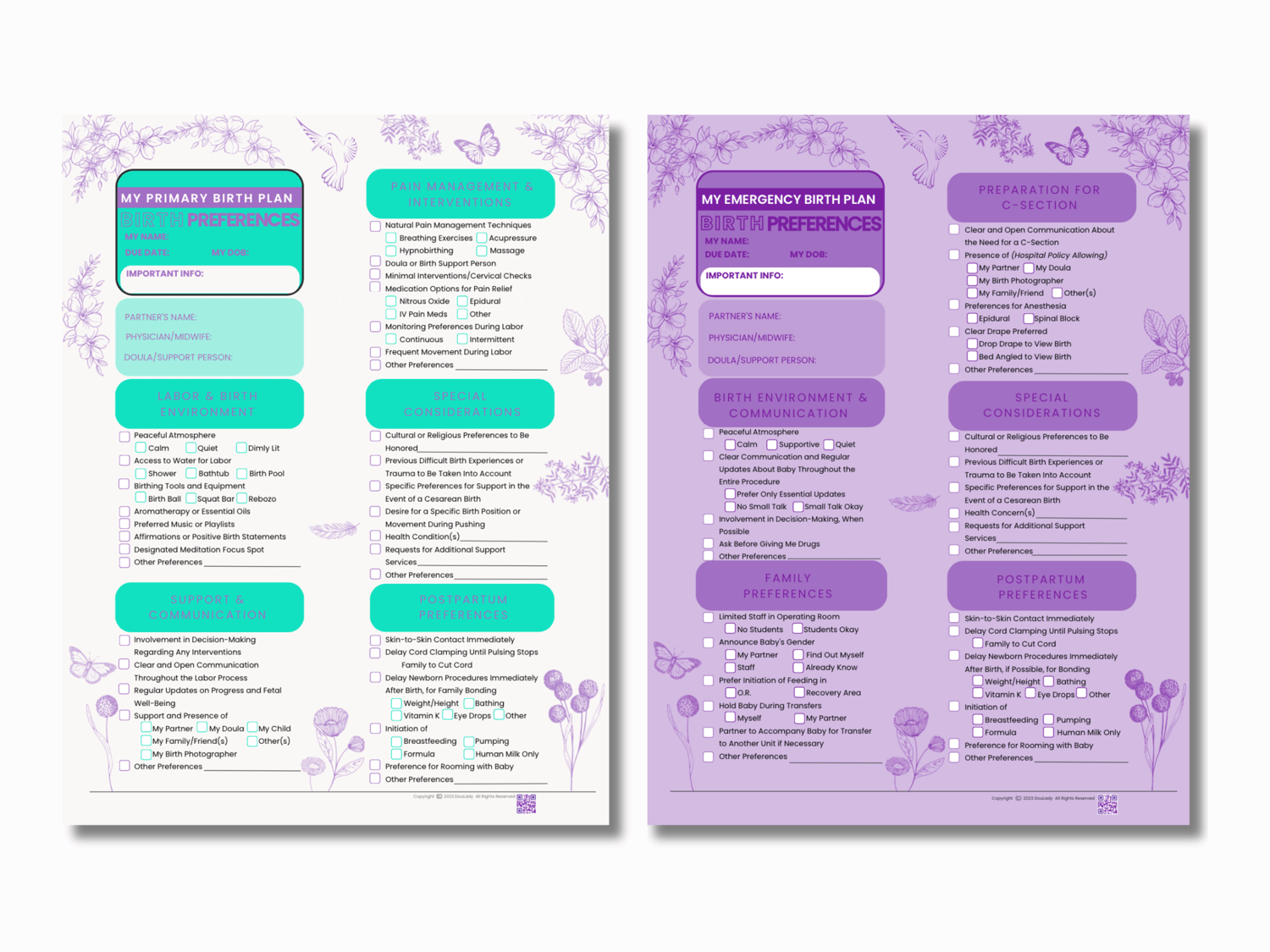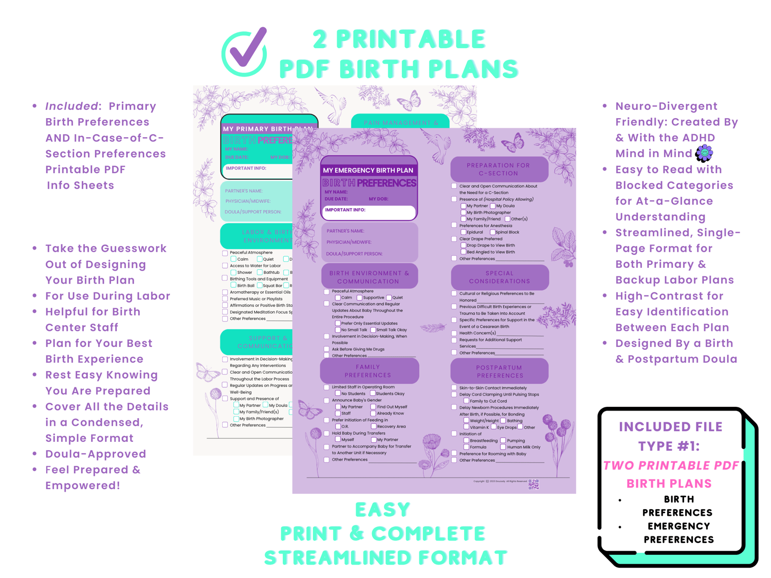 - User-Friendly Format: Clearly communicate your birth preferences with ease, thanks to checkboxes and organized colorful headers for quick navigation.