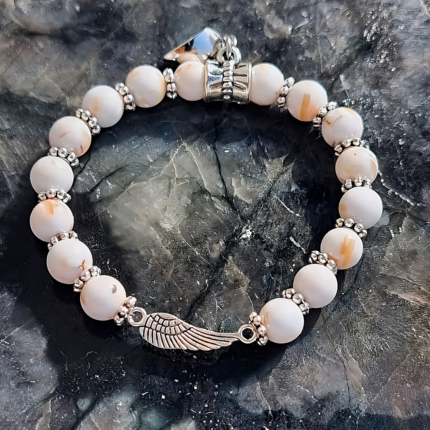 Bracelet Material: Howlite Natural Stone with Jasper Sediments, Zinc Alloy & Stainless Steel, Magnet