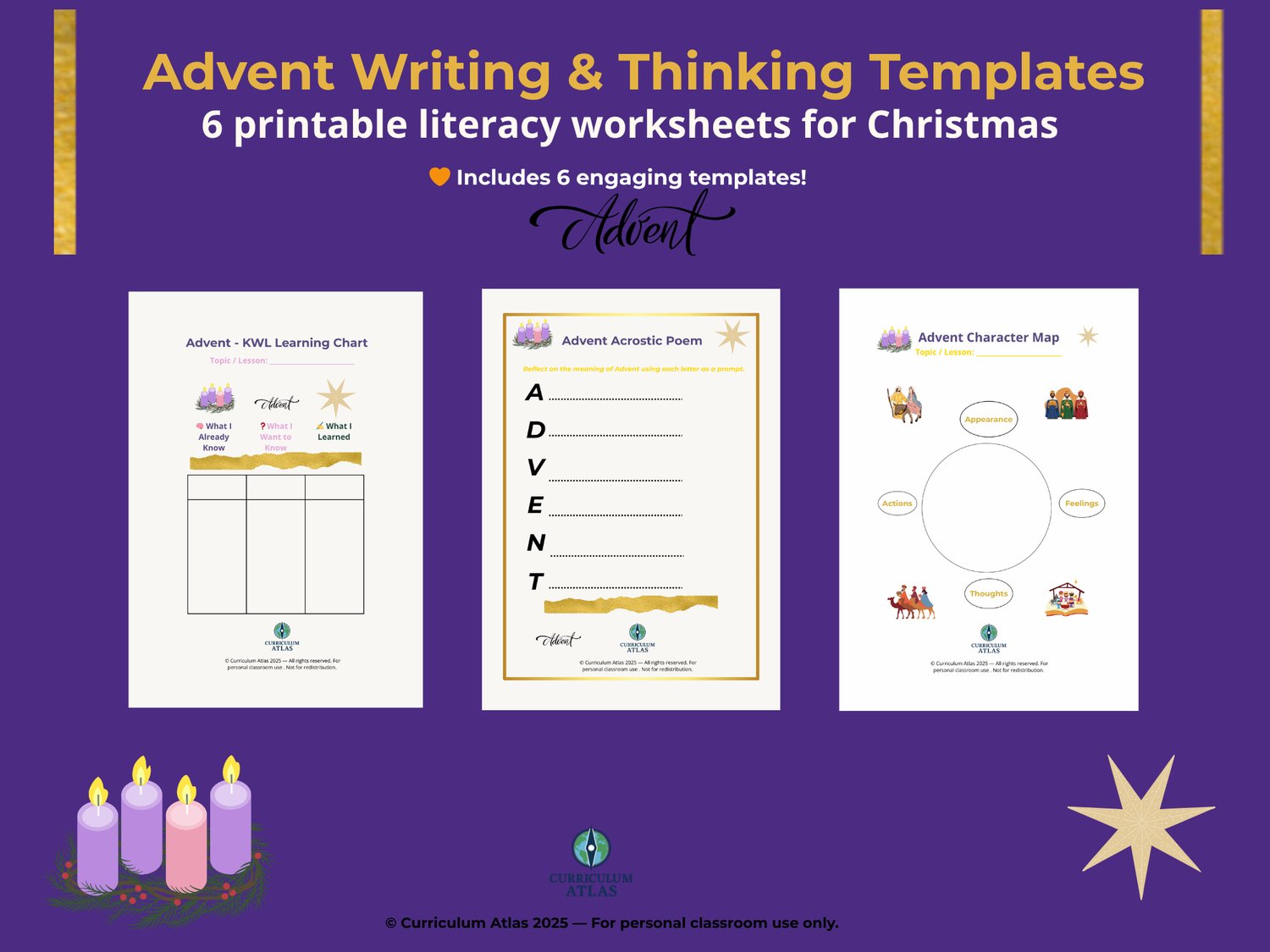 Celebrate the season of Advent with these creative and reflective writing templates from Curriculum Atlas.