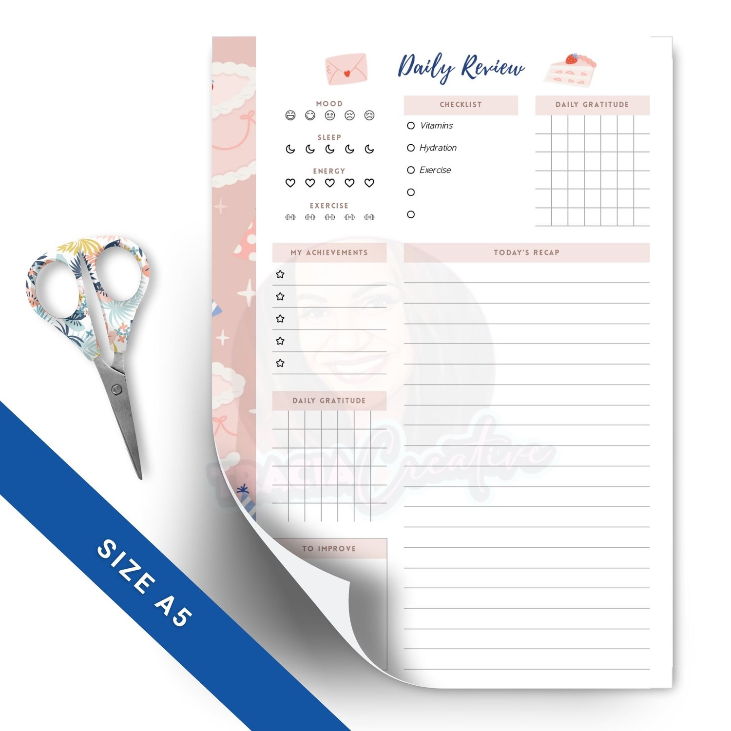 Tired of feeling lost in your daily routine? Our Daily Review Planner Insert is the perfect tool to help you take charge of your day. Designed specifically for A5 size notebooks, this insert allows you to reflect on your mood, sleep, energy levels, and exercise. By incorporating daily gratitude and tracking your achievements, you’ll cultivate a positive mindset and elevate your personal growth journey.
