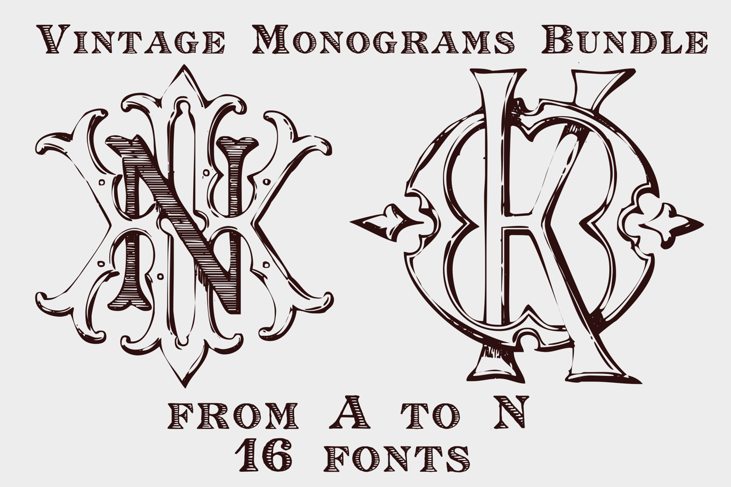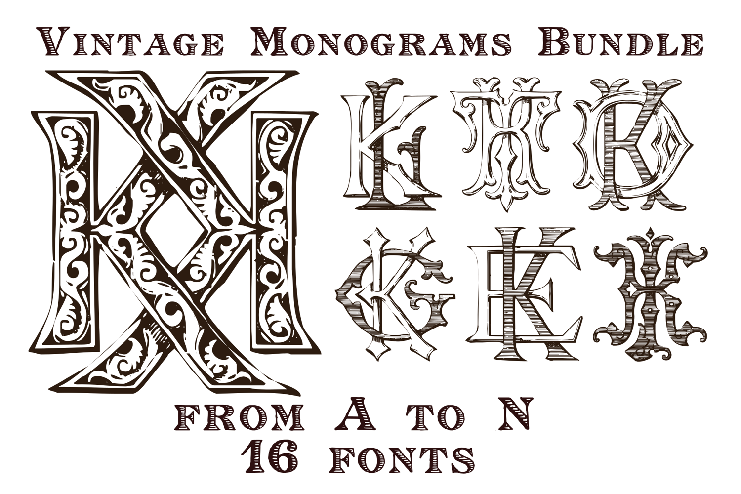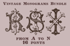 Here you get 19 fomts, covering mongrams combinations from A to S,plus tow fots with THREE LETTRES monograms. Genuine vintage monograms.