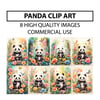 Panda Clip Art Designs - 8 High-Quality JPGs Bundle, Watercolor Digital Prints, Wall Art, Commercial Use