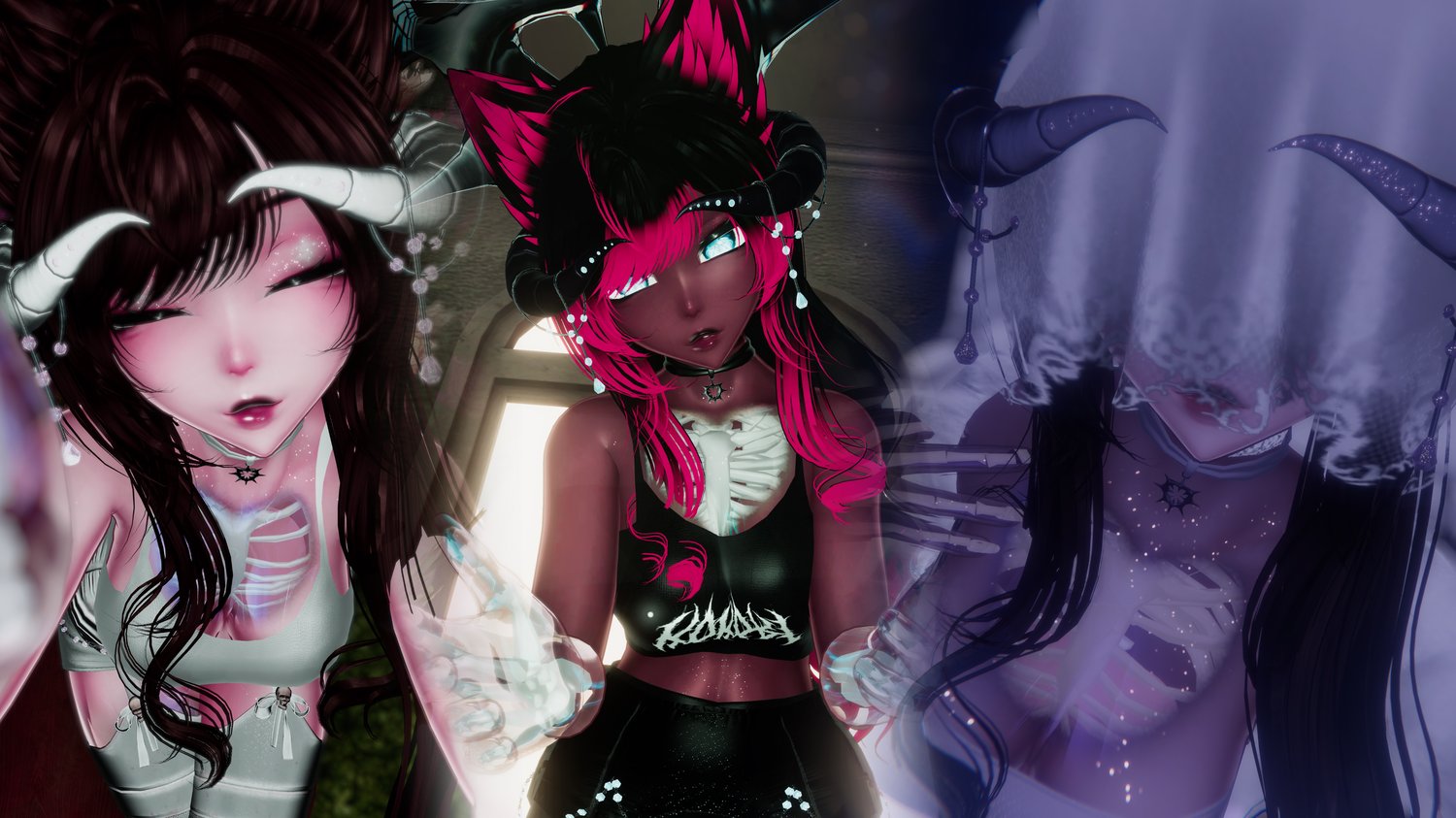 VRBASE EGIRL (my edit) - "Starlight" Anime Head - Payhip (my edit)- Face Texture - Starlight Head - Skin Texture Pack - VR Base - 203 FREE CICI HAIR TEXTURE EDITS - VOID | Eye textures [31 Emission Masks] - Payhip - Chained Horns - Payhip - MADS by Nessy! - KittBun by Nessy! - Carnal Tongue - Skeleton Base - Commercial License - LUCA EARS & TAIL by AresVR - Jinxxy