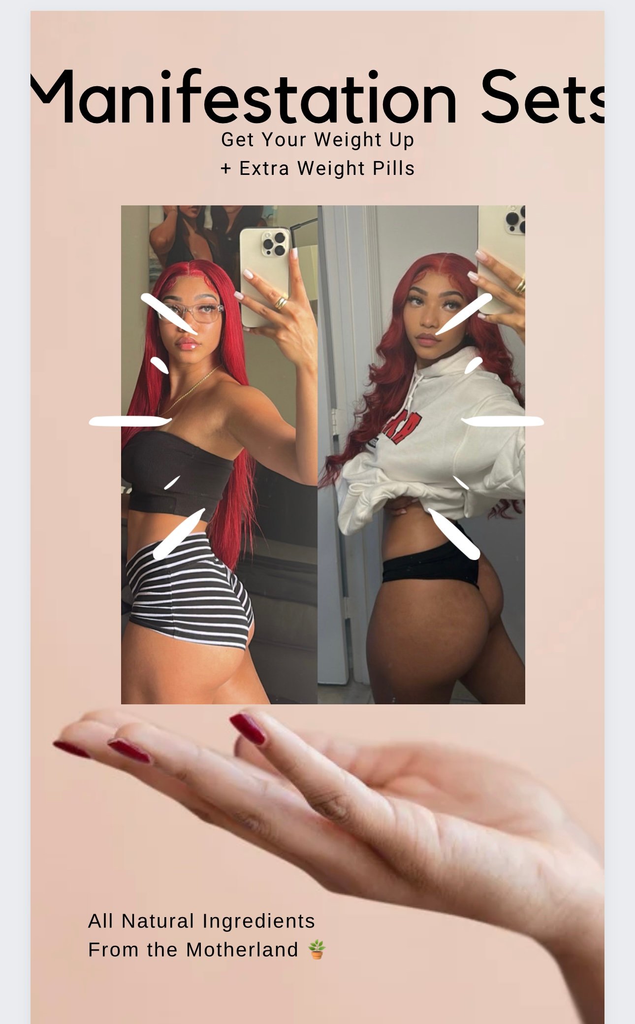 Our Manifesting Sets Help Our Ladies Gain The Actual Weight They’re Manifesting To Actually Achieve and Reach The Weight # They’re Reaching To We Believe In Manifesting Instead Of The Word (Desire) Because Once You Manifest You’ll See It In Your Own Reality Right Before Your Eyes🤩 Manifesting Is Real Just As Wishing Upon A 5🌟🌟🌟🌟🌟 Star Baddie Weight Results☺️😉
