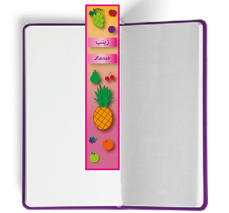 This brightly coloured bookmark can be personalised by adding your child's name in Arabic and English (or any other preferred language) in the boxes provided.
