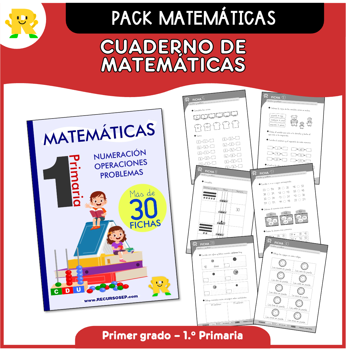 Desde RECURSOSEP os ofrecemos un cuadernillo con más de 30 fichas ilustradas y variadas para trabajar los principales contenidos de matemáticas de 1.º de Primaria, perfecto tanto para repasar en casa como para utilizar en el aula.