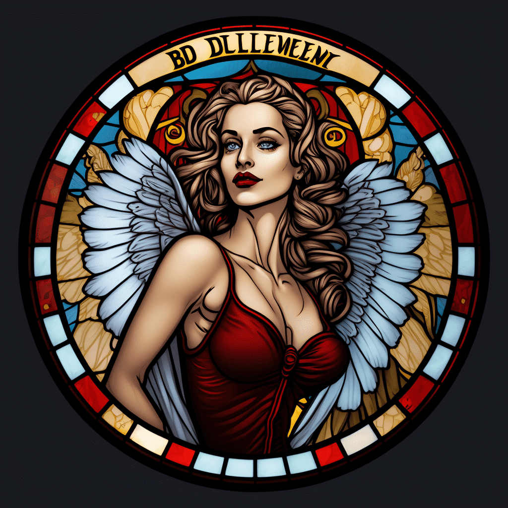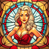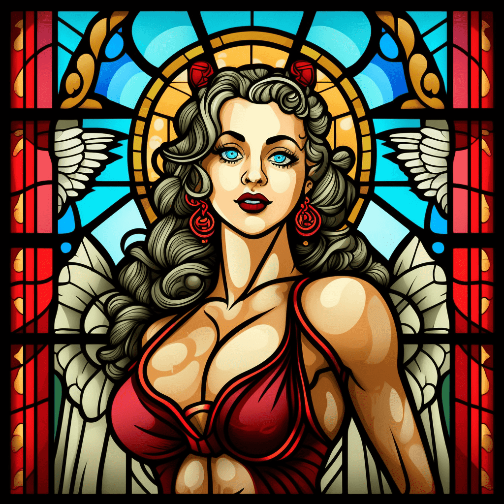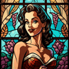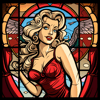 Context: stained glass, posing, sexy, portrait, beautiful, pin up woman,
