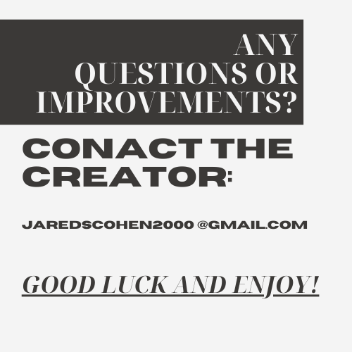 For any questions, please reach out to jaredscohen2000@gmail.com