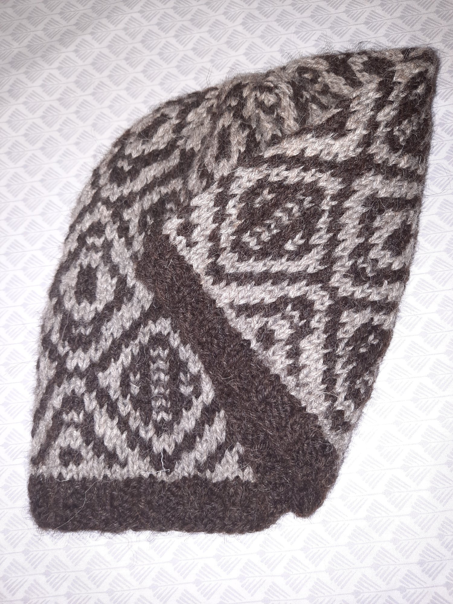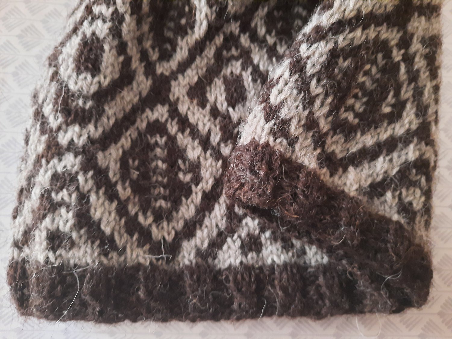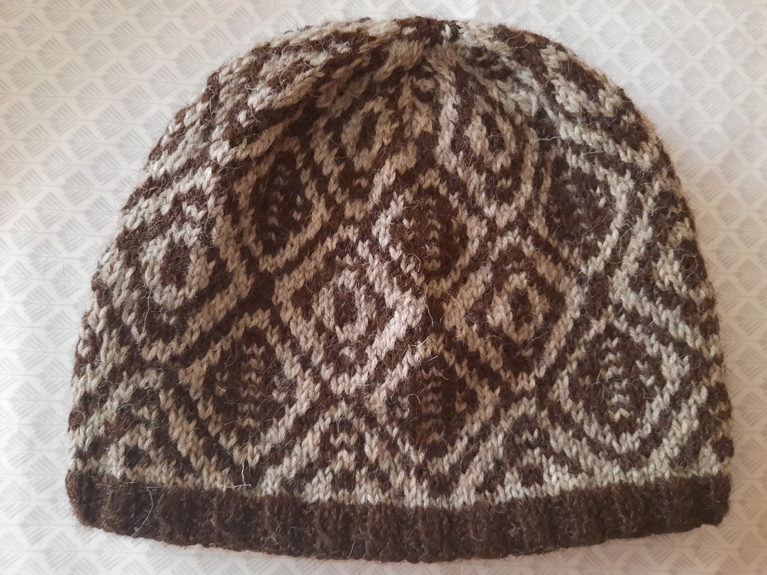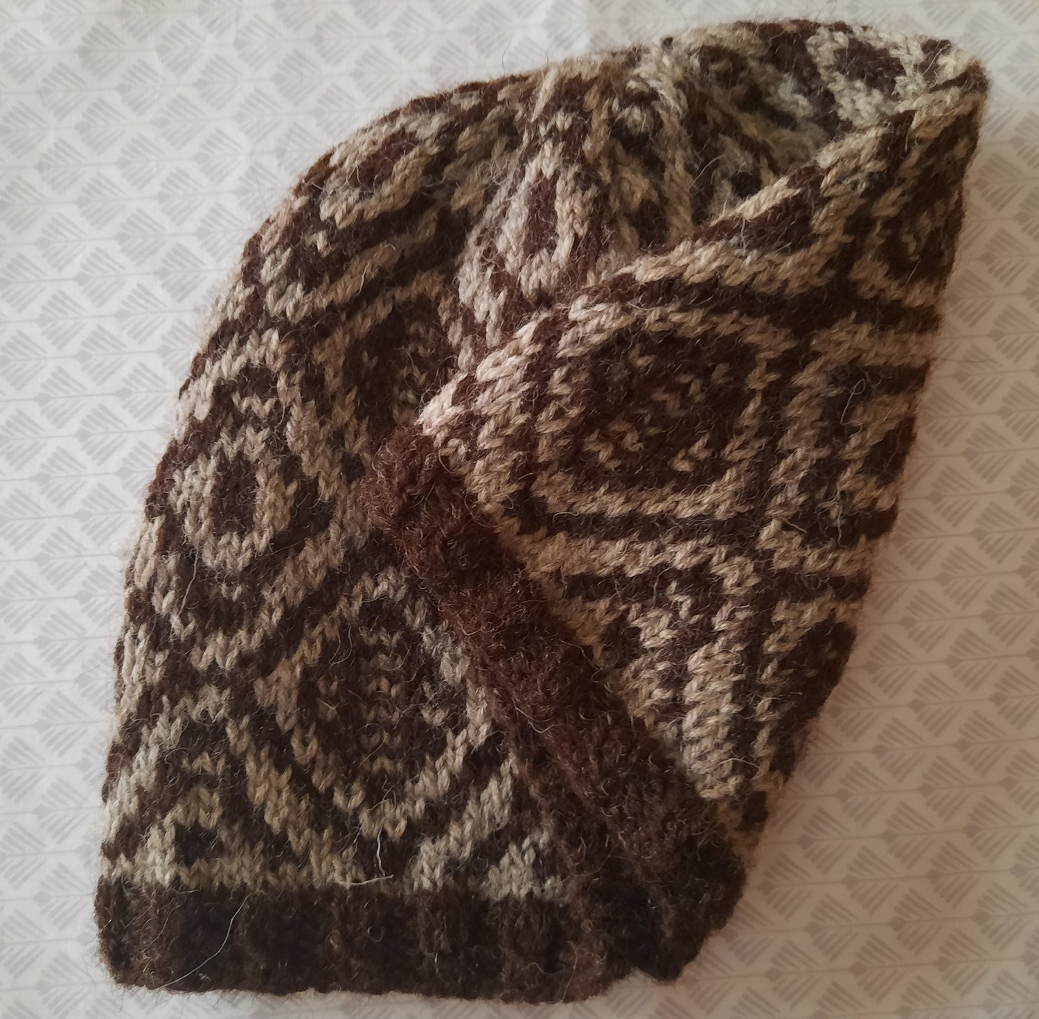 This hat utilizes the simple technique of working stitches in only one colour each row and slipping the rest, whilst achieving a strong graphic look in high contrast colours or a more muted look with lower contrast colours, but only ever working with one strand of working yarn at a time, producing a colour work look the easy way!