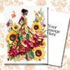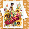 In Full Bloom Paper Doll Greeting Note Card | Blank Inside | Black Girl Greeting Card