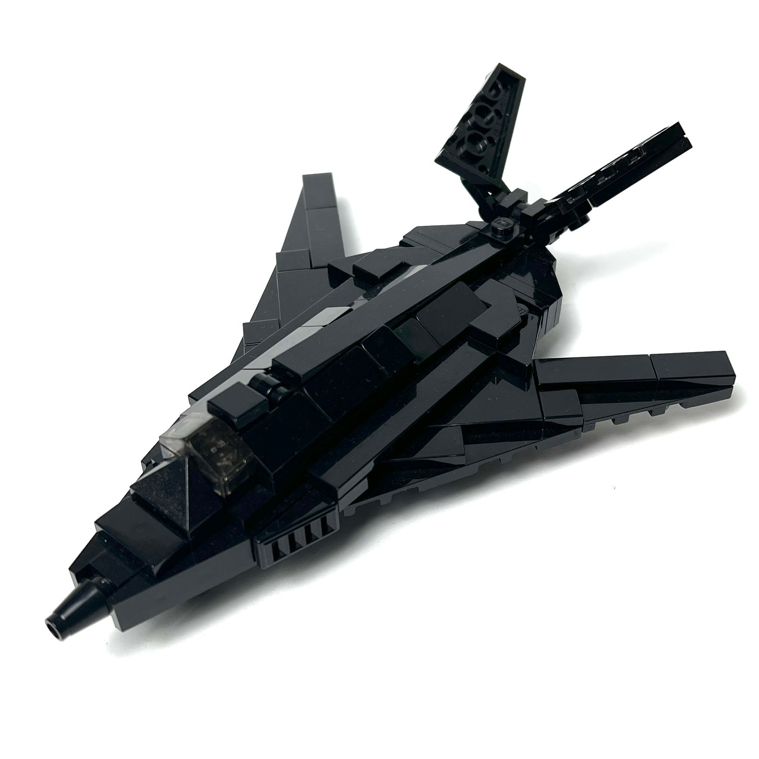 Here's our version of this aircraft in 1:120 scale, and was made to be compatible with nano figures, or nano soldiers from Brickmini. Went through two different version before settling on this final one, the most difficult part was to shape the steep wings and nose of the aircraft. Once I was able to get the sleek look, it was a matter of making it sturdy and the model was complete. You can put it on a stand or simply display it as it is as there are three wheels to support the aircraft.