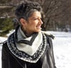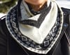 This shawl is a quick knit and includes a few fun techniques to keep your interest. There is a bit of lace, intermittent garter stitch stripes, and a border that can either be done in stranded knitting or double knitting.
