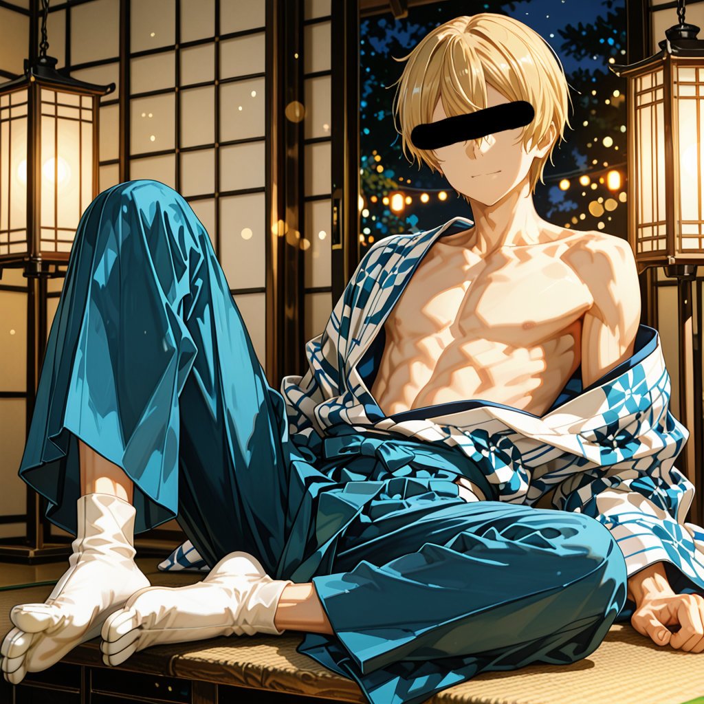 日本の正月をテーマに、着物を着用している男性を、キャラクターごとにお任せ作成しました。男らしいキャラクターの魅力を思い切って表現しました。