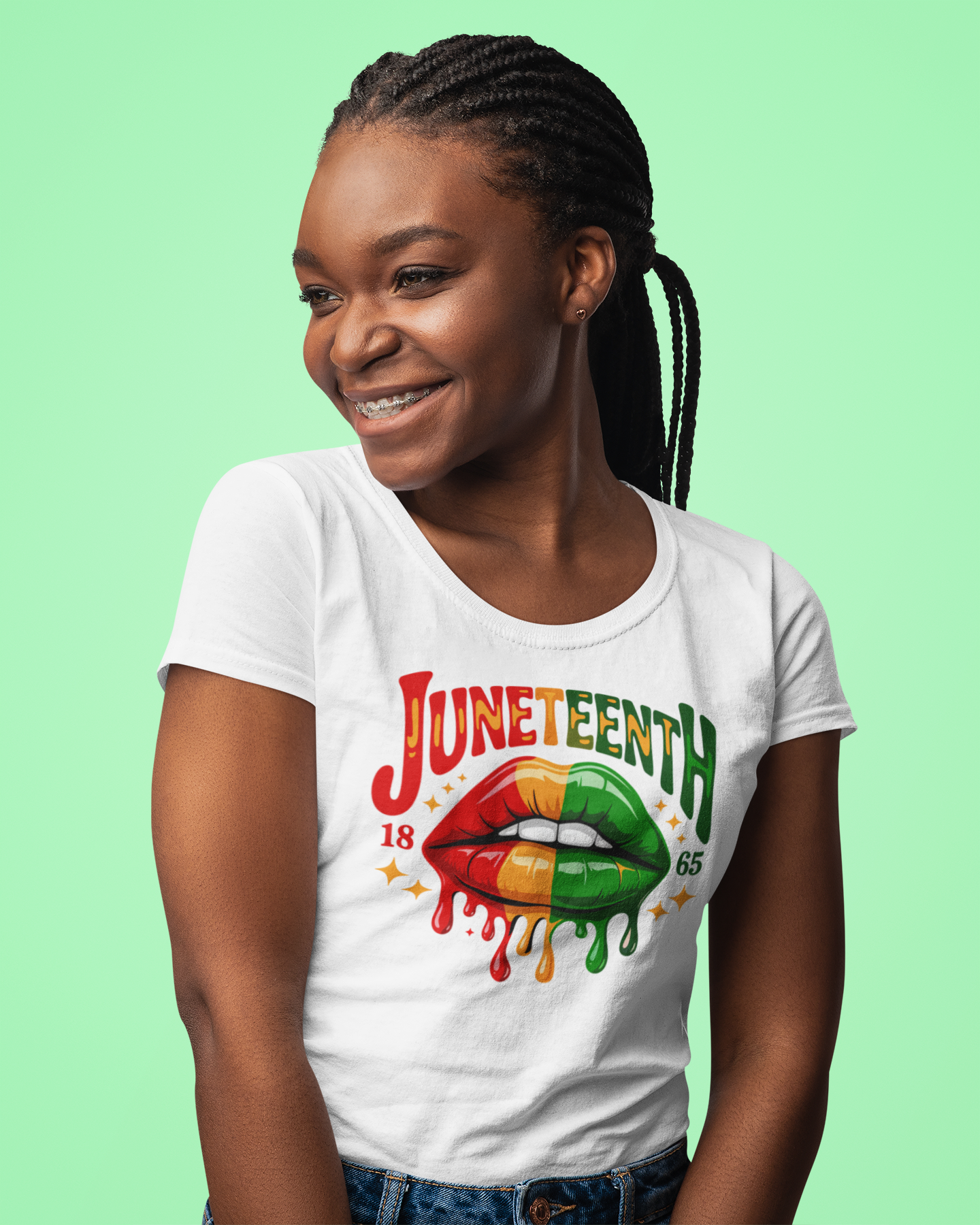 This shirt is giving me LIFE with those dripping lips in all the Pan-African colors! It's giving artsy, it's giving melanin magic, it's giving modern Black excellence with that historical 1865 nod. Perfect for when you want to celebrate Juneteenth but make it fashion, you know? Whether you're hitting up parties, festivals, taking those fire Instagram pics, or just want to serve looks while honoring the culture, this design is IT. It's bold, it's beautiful, and it's gonna have you feeling like the work of art you are!