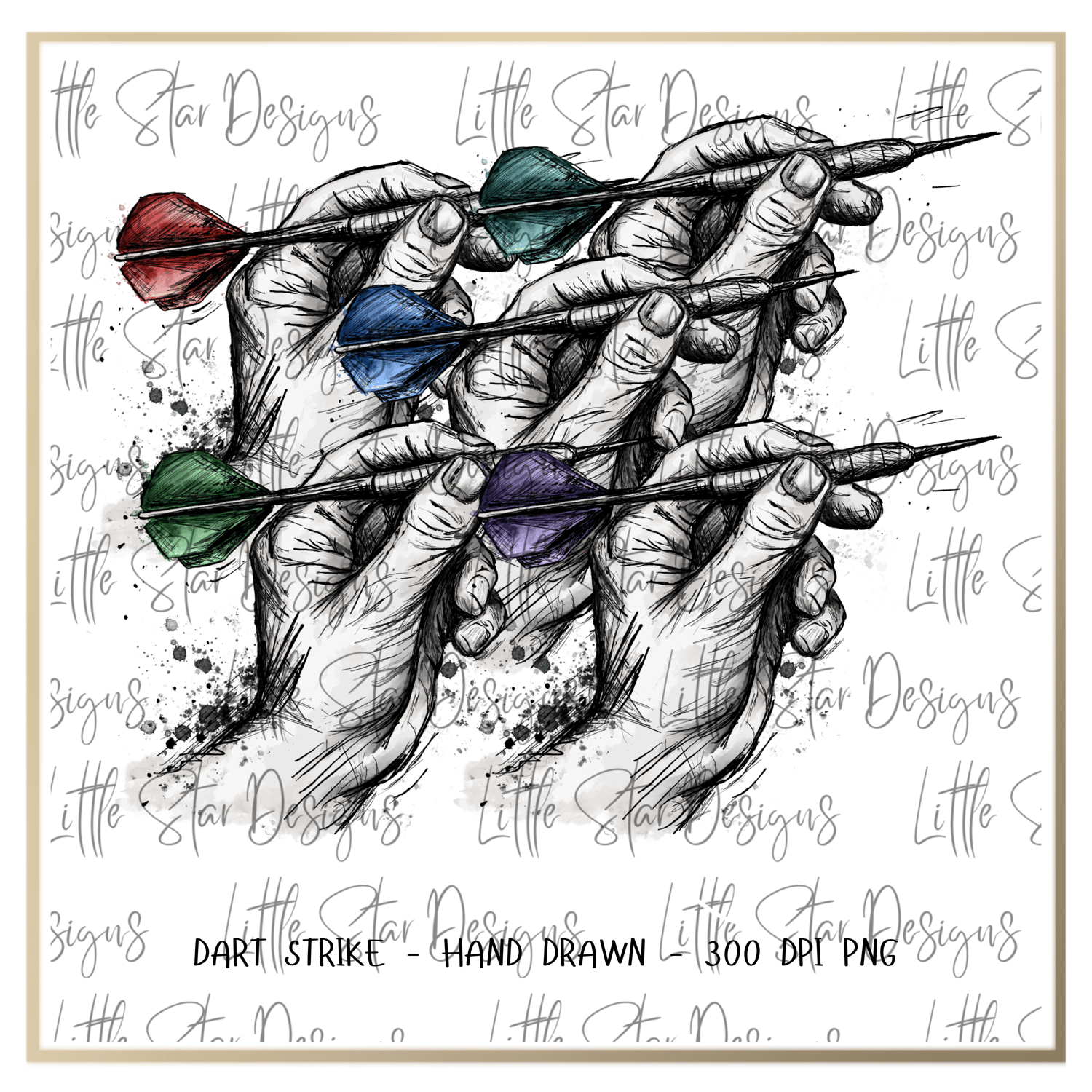 This is a high-quality hand drawn (300dpi PNG) digital download of my original artwork, titled 'Dart Strike'', designed for sublimation and print.