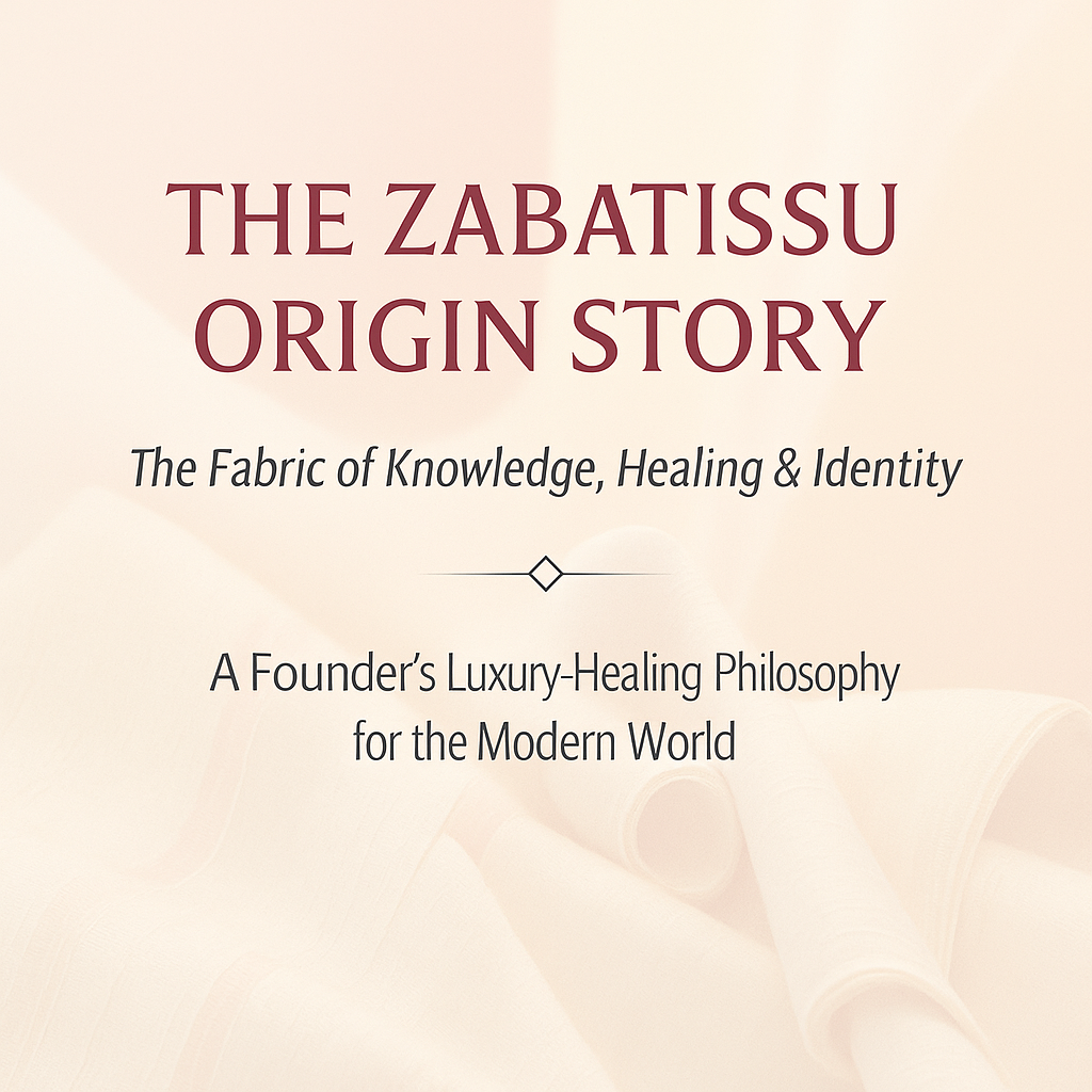 THE ZABATISSU ORIGIN STORY is a transformational guide that reveals the philosophy behind Zabatissu — a luxury-healing framework designed for veterans, survivors, and anyone seeking to restore the fabric of their identity.