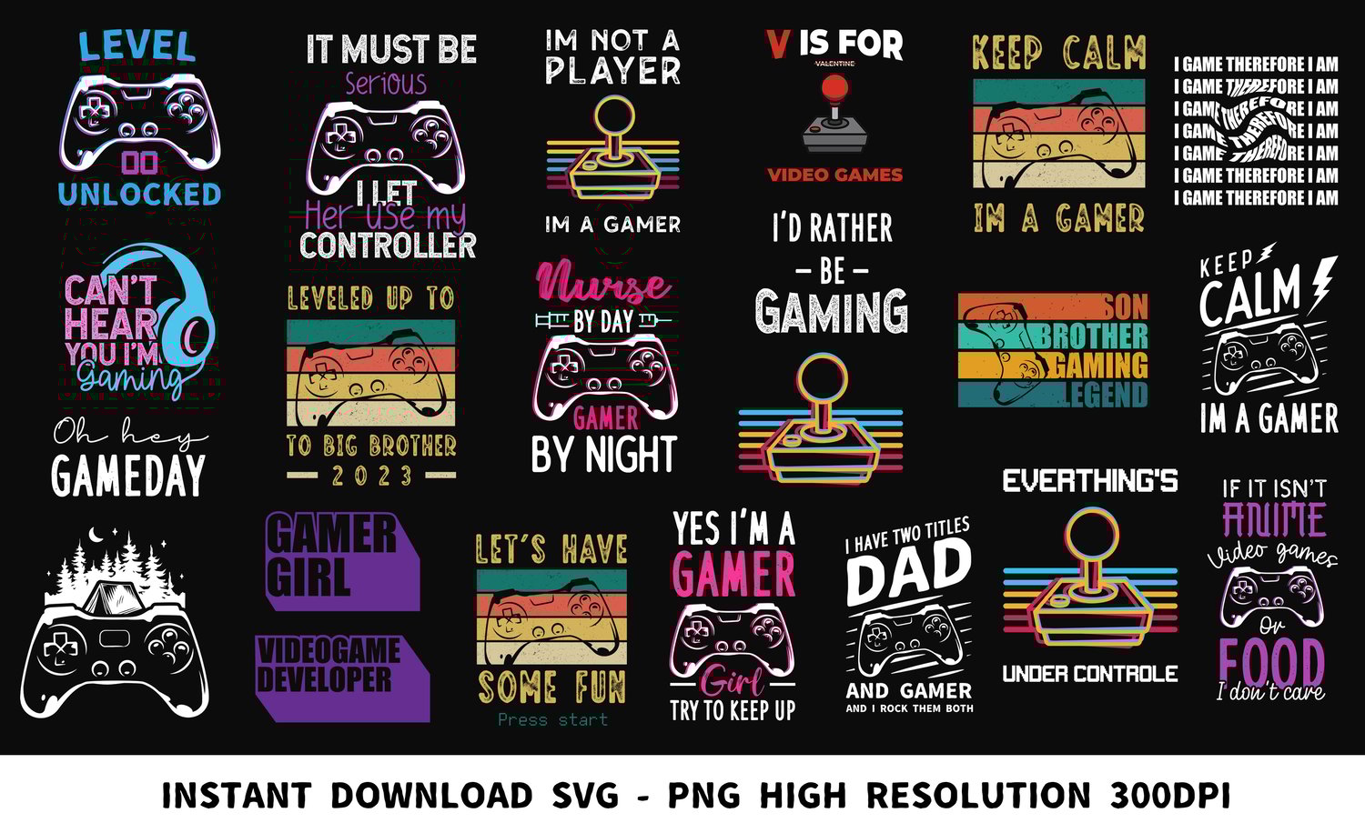 44 Gamer Bundle SVG / PNG, Retro gaming design, Bundle cut file is perfect for so many uses! and so much more, let your creativity shine! Use it for personal use or commercial use.