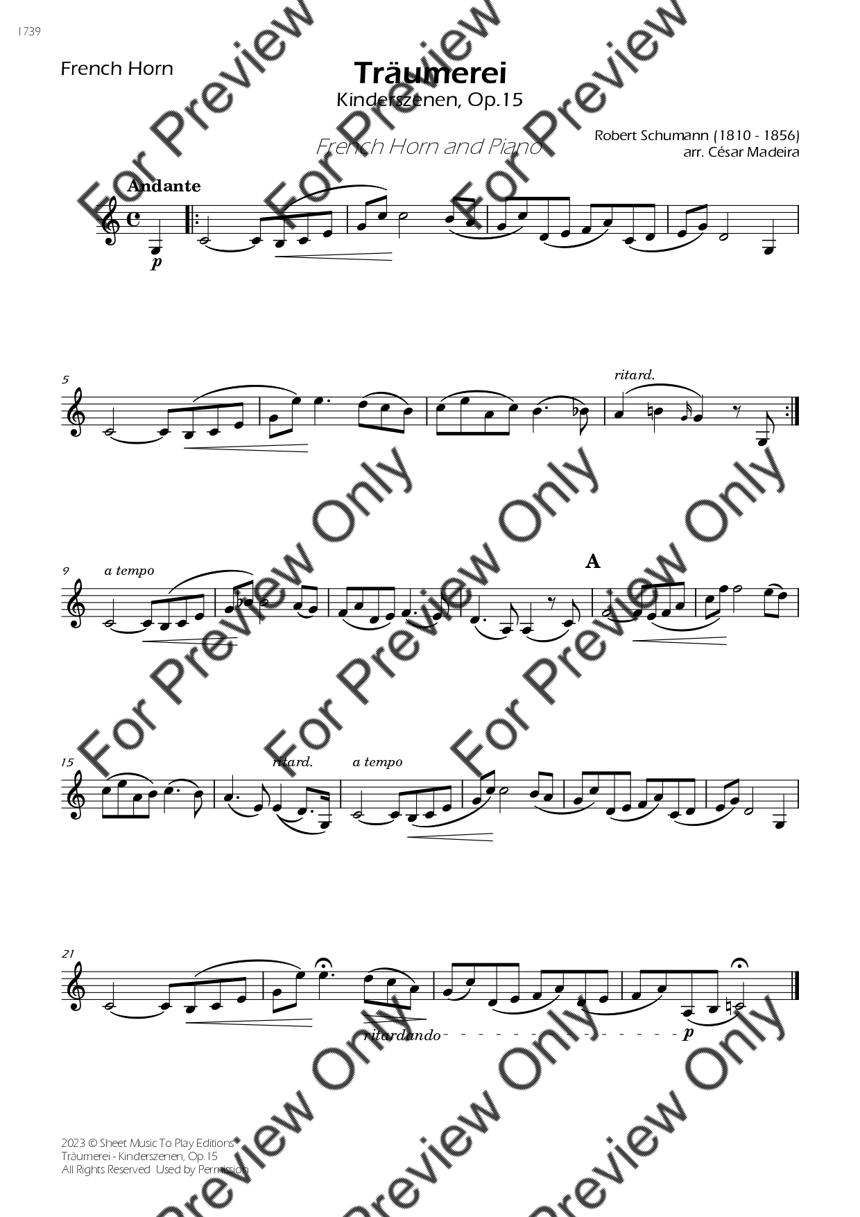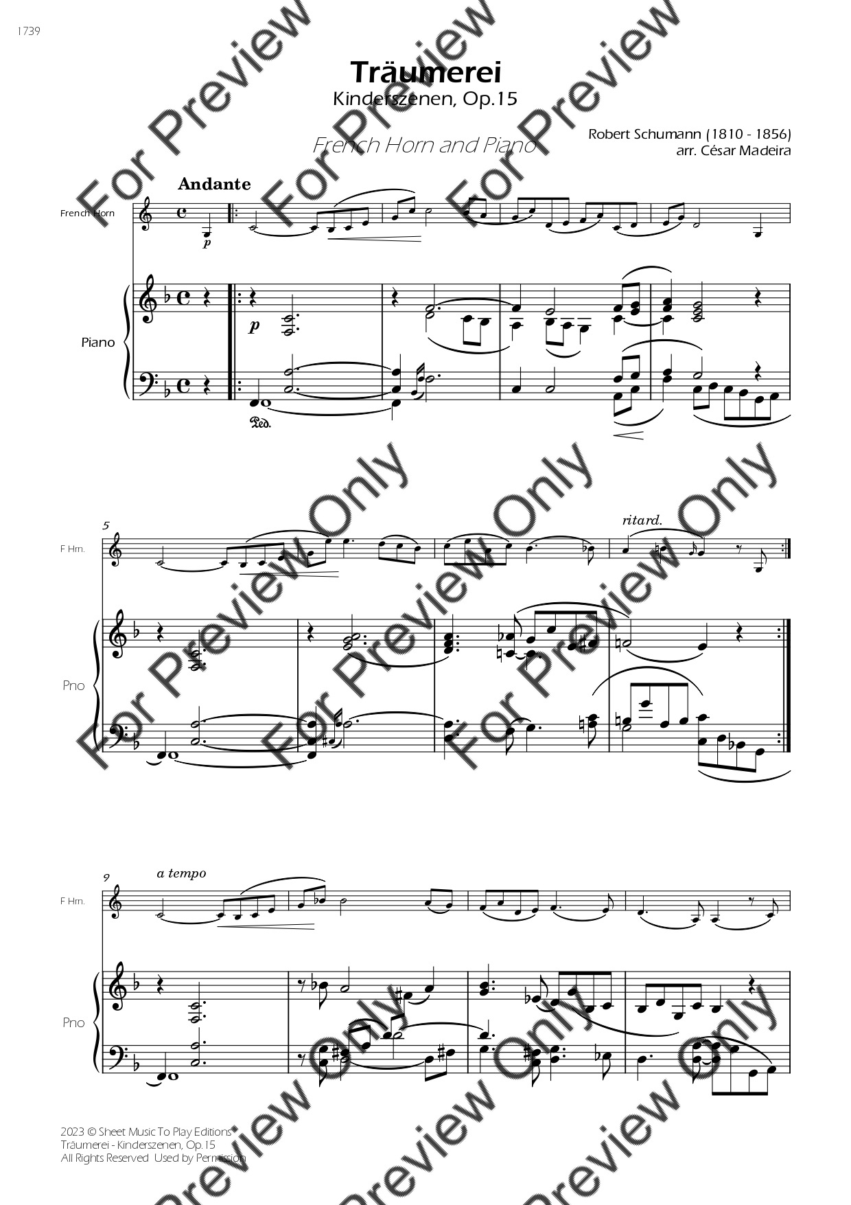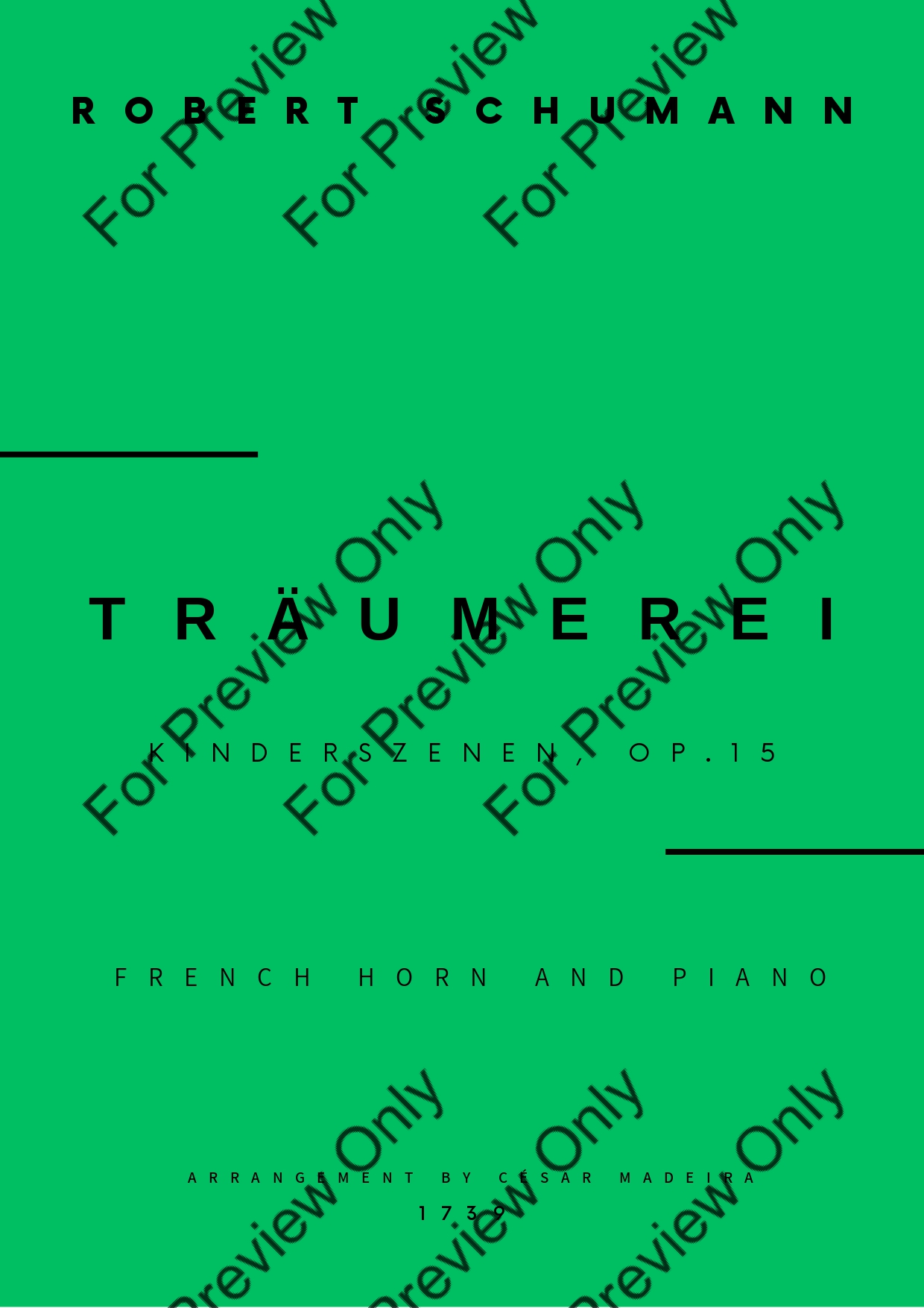 Träumerei from Kinderszenen, Op.15 by Robert Schumann. Arrangement for French Horn and Piano. With Full Score and Individual Parts. Have fun!