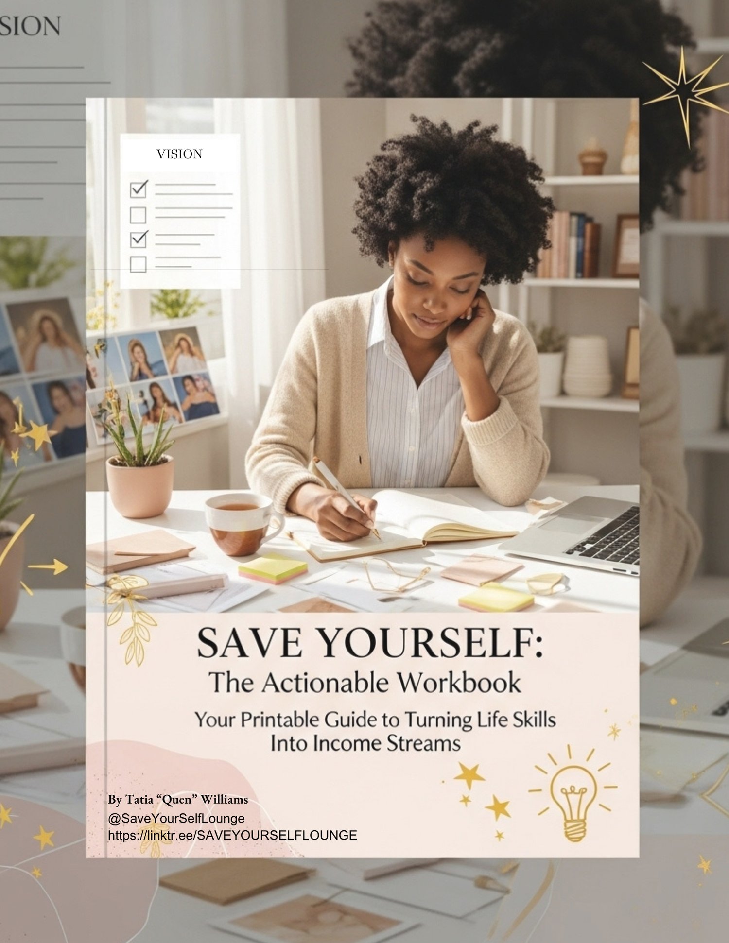 This SAVE YOURSELF Digital Bundle includes both the full eBook and the Actionable Companion Workbook β a powerful, printable combo for women who are done waiting for permission to succeed.