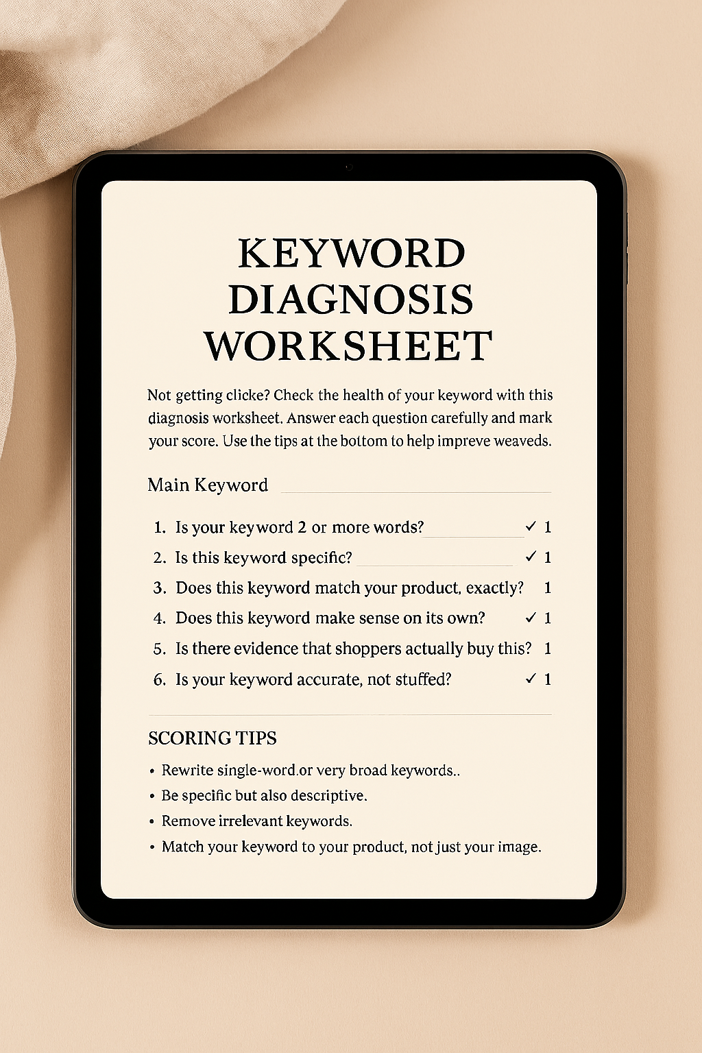 This Etsy SEO Troubleshooting Guide shows you exactly what’s going wrong — and how to fix it fast. Inside, you’ll learn how to diagnose SEO issues, improve your keywords, strengthen your titles and tags, and get your listings back in front of buyers.