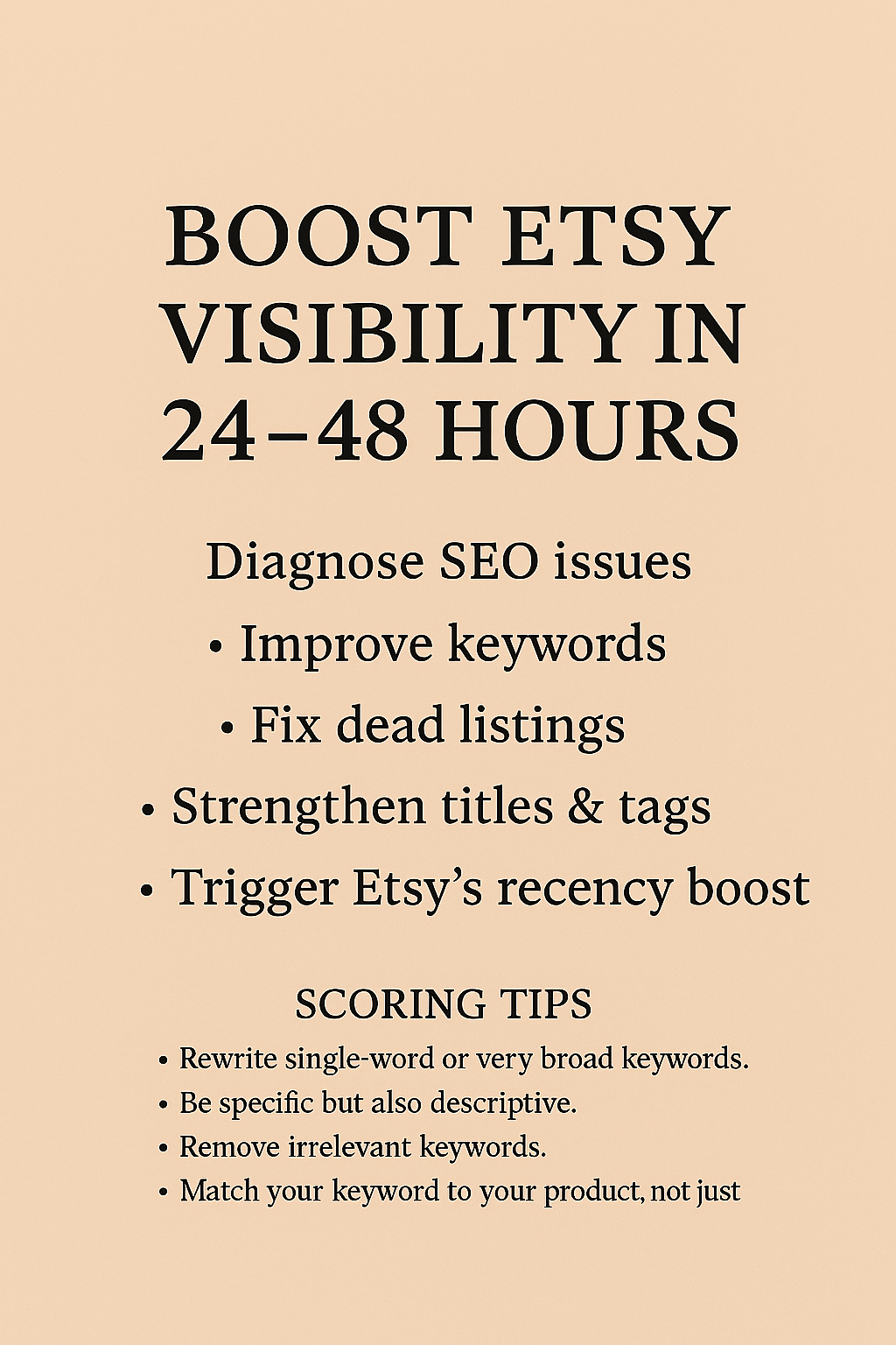 Perfect for beginners and experienced sellers who want a clear, simple system for improving visibility.