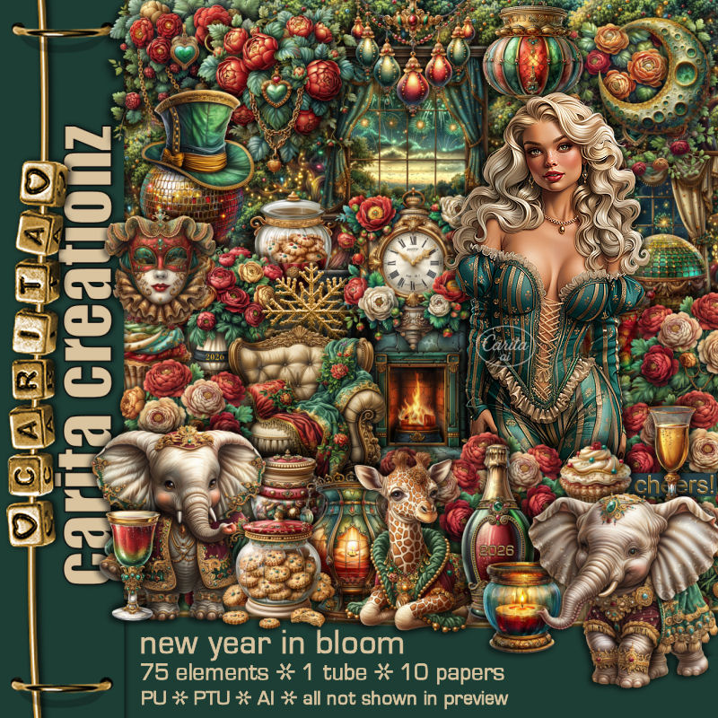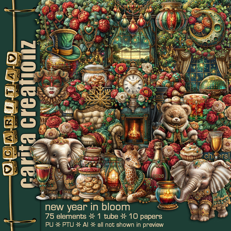 Beautiful new year themed kit with 75 elements, 1 tube and 10 papers.