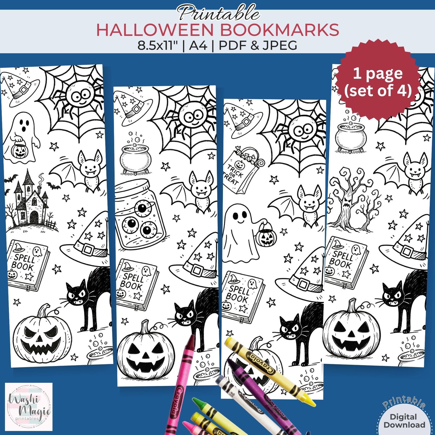 Easy to download and print at home, these bookmarks make great gifts or festive decorations for your bookshelves. Embrace the season with this delightful coloring activity, perfect for both kids and adults! Get your set today and let the Halloween magic begin!