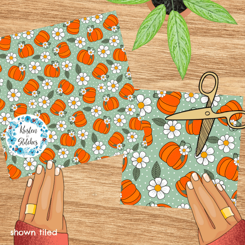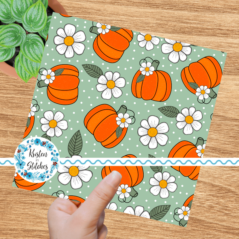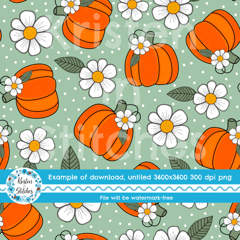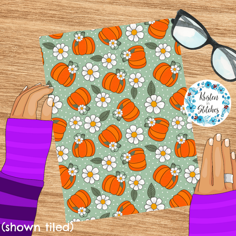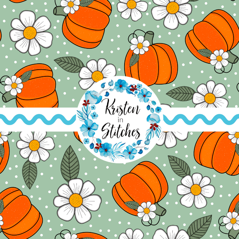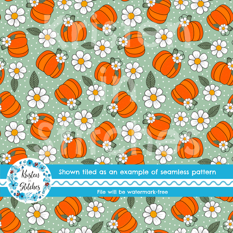 Little Pumpkin Halloween Daisy Flowers Seamless Pattern