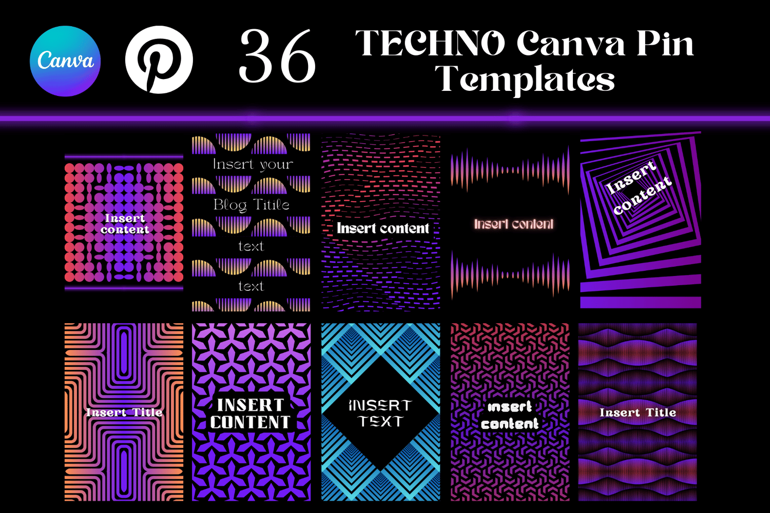 36 Techno Pinterest Pin Canva Templates