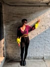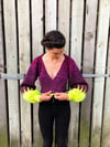 The FluoresKnit combines my love of bubble sleeves with my love of fluorescent colors. It is knit from the bottom-up holding a strand of sock weight yarn with a strand of worsted weight yarn to create a slightly marled effect. This cropped sweater is customizable with the option of a plunging V or shallower V-neck as well as instructions for modifying the body & sleeve length.