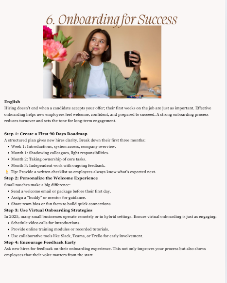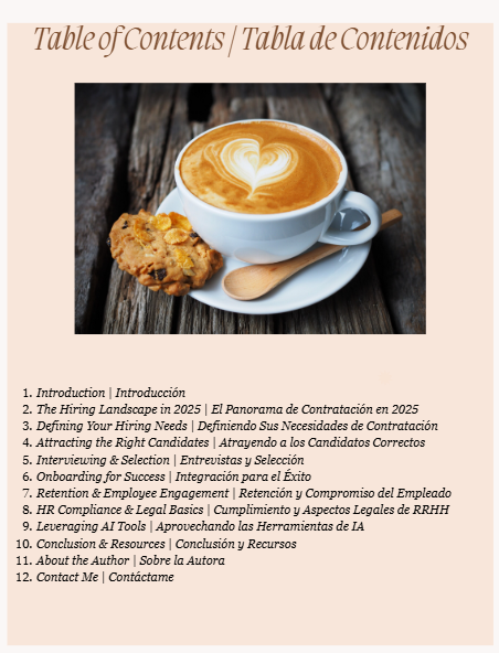 In How to Hire in 2025: A Bilingual Guide for Small Businesses, HR professional and entrepreneur Maria Rodriguez shares proven strategies in English and Spanish to help you:
