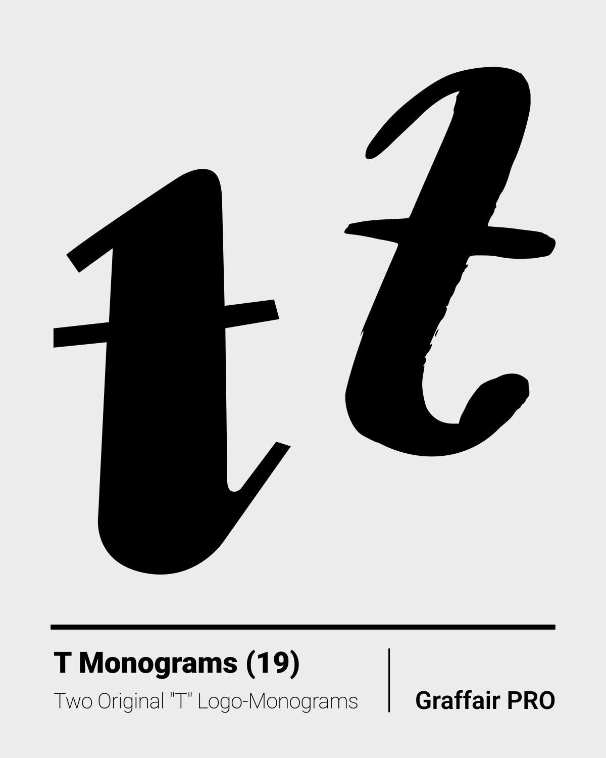 T Monograms (19): The 19th set of two original "T" logo monograms, included in the "1050 SVG Monograms" super bundle, which also features an Index catalog.