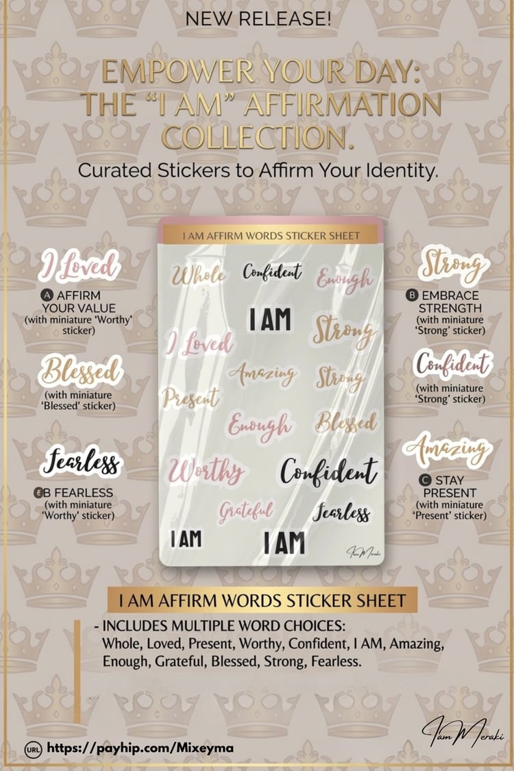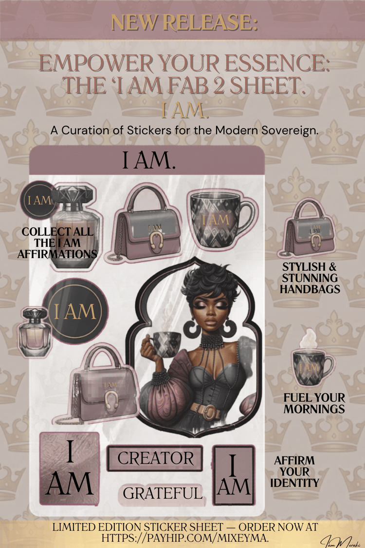 Bring that high-end "Elevated energy" to your stationery collection instantly! The I AM: Becoming digital Art asset & sticker sheet. It is designed for the visionaries, the journal queens, and the manifesting goddesses who love to DIY their magic.