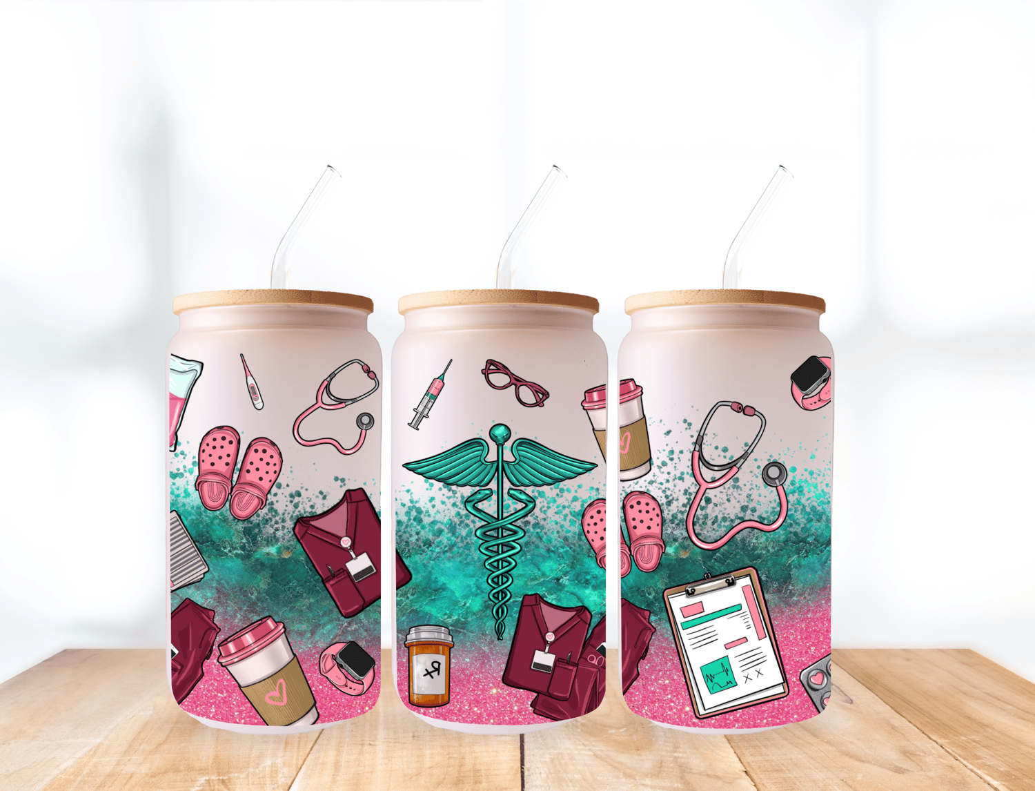 "Stay refreshed and motivated with our 'Comfort & Care' 16-ounce glass tumbler, designed especially for the heroes in healthcare. Made with high-quality, durable glass and capped with a natural bamboo lid with silicone ring, this tumbler is perfect for enjoying your favorite beverages, hot or cold. The reusable glass straw makes it an eco-friendly option for your daily hydration. It's not just a drinkware item—it's a statement piece that celebrates the blend of hard work and compassion that defines the medical field. Cheers to the difference you make, one sip at a time!"