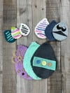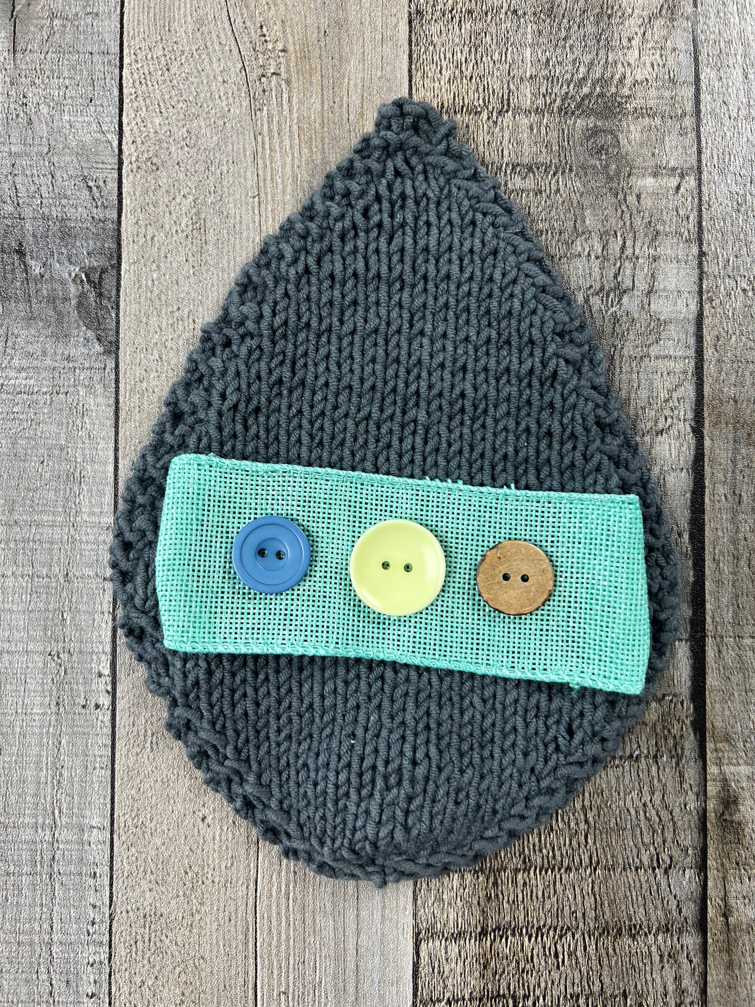 The Eggtastic Dishcloth Canvas is a fun, quick knit perfect for spring and Easter egg decorating. But the best part is its large variety of uses – as a piece of home décor (including strung as garland or decorating the dining table), a utilitarian dishcloth or scrubby, or an art canvas for kids to decorate. If you’re using it as an art canvas a few ideas for decorating include: