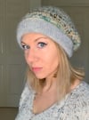 **Yarn**: 200 (225, 250, 275) yd/183 (205, 229, 251) m DK weight yarn and 125 (150, 175, 200) yd/114 (137, 160, 183) m lace weight mohair or Suri alpaca