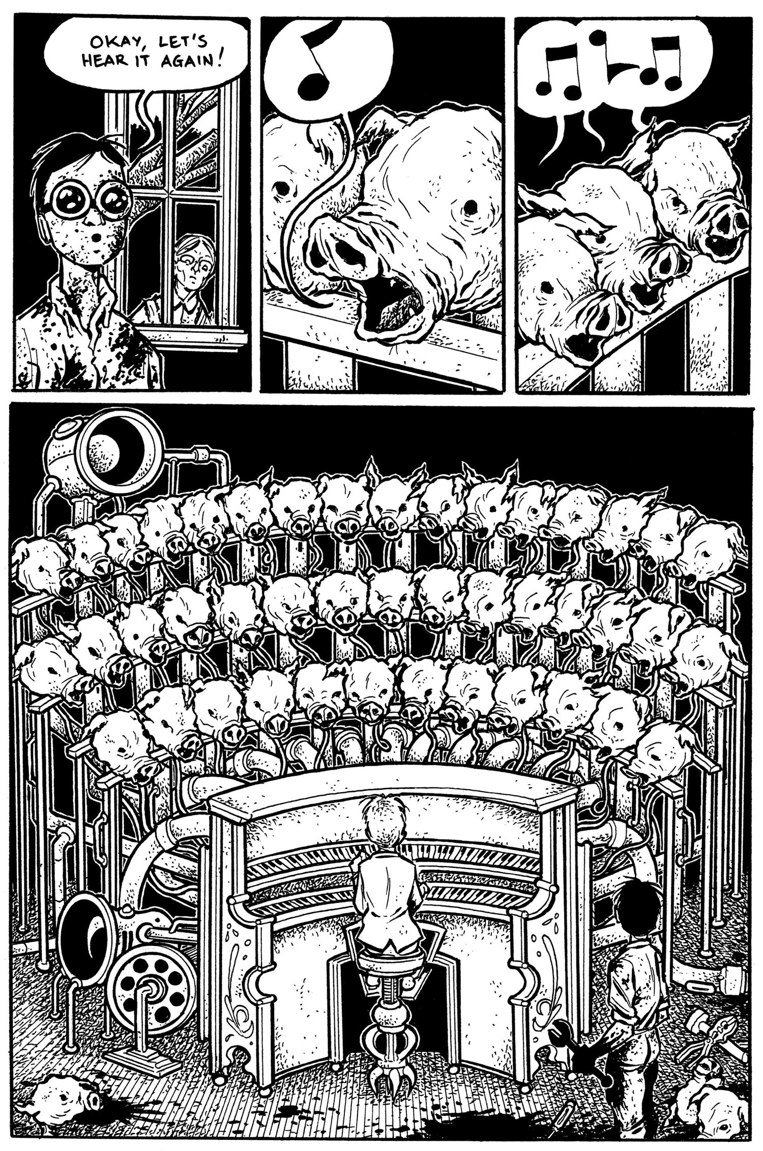 Set in a fictional 19th Century New England town, the narrative initially details the relationship and maturation of Edmund and William Torpor. But the two brothers quickly elicit the scorn and recrimination of an unamused public when they reveal their musical creations built from strange technologies and scavenged animal carcasses. Driven to seek a concealment for their aberrant activities, they make a startling discovery. Perhaps they will divine the mystery of the squirrel machine?