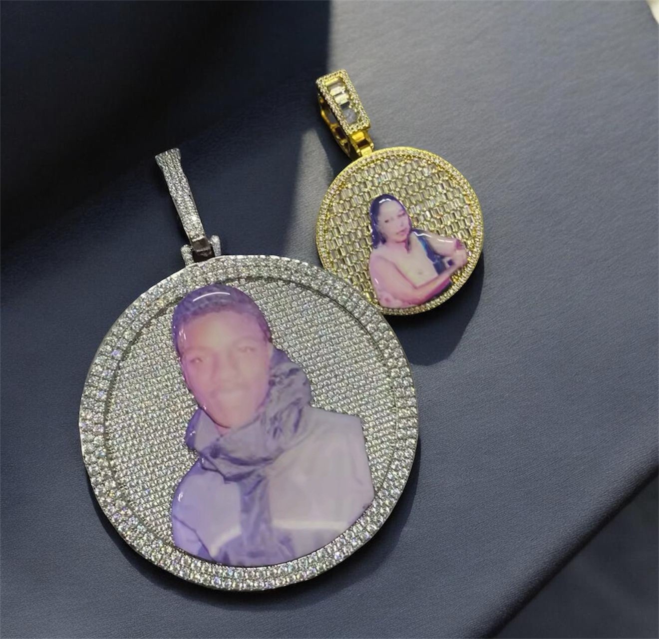 Turn your memories into a statement piece with this custom round medallion photo pendant 💎✨ Fully iced out with sparkling diamonds, the center holds your chosen photo while the back can be engraved with a special message. Perfect for men or women who want a bold, personal piece that stands out.