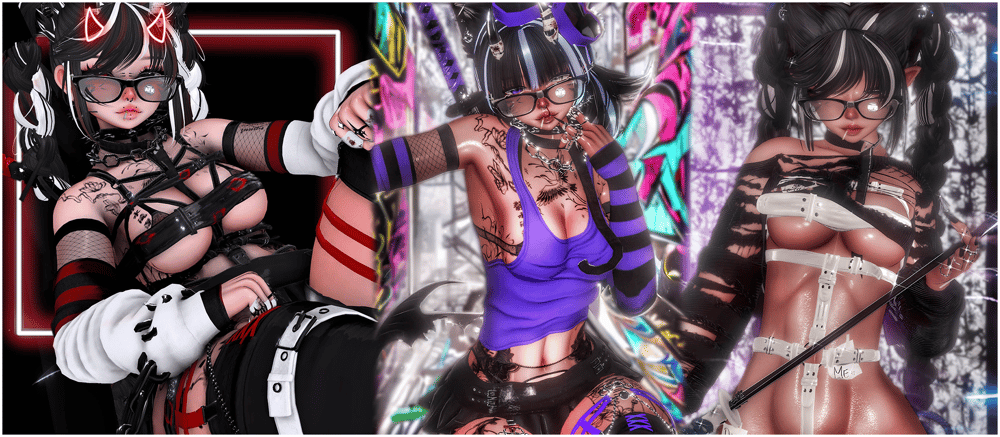 HEAD (heavily edited + retextured by me) | BODY (re-rigged + edited by ryuji and me) | TATTOOS | BODYSUIT | NAILS | HEAD NORMAL | NOSE BLEED,FACE STRIPES |
