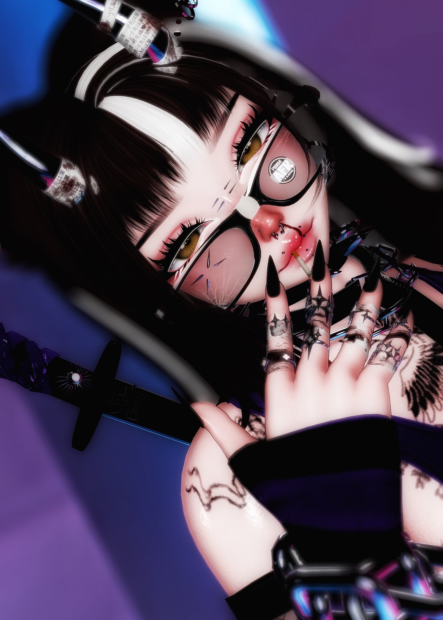 ── .✦ ACCESSORIES • back katana, beanie, calf garter, chain anklet, chain bracelet, choker n chain, earrings, finger bandaids, glasses, goggles, hand katana, harness, leg warmers, neck belt, necklace, needle, nip rings, rings, shibari, sticker, sticky notes, thigh garter, yokai mask, cigarette, vertical labret, angel bites, cheek spikes, bridge spikes