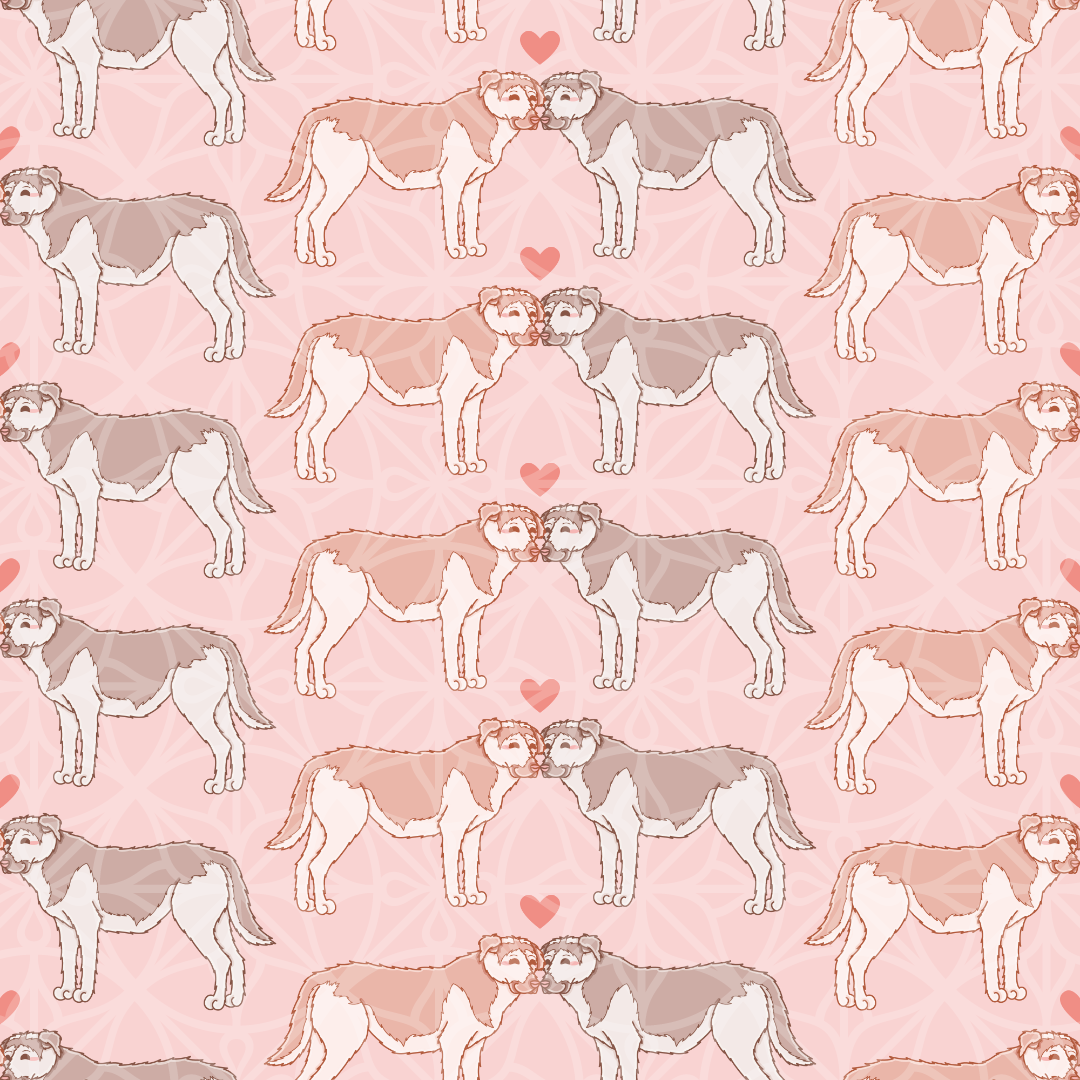 Saint Valentines Day dogs vector repeat pattern. Kawaii puppies in love seamless illustration background.
