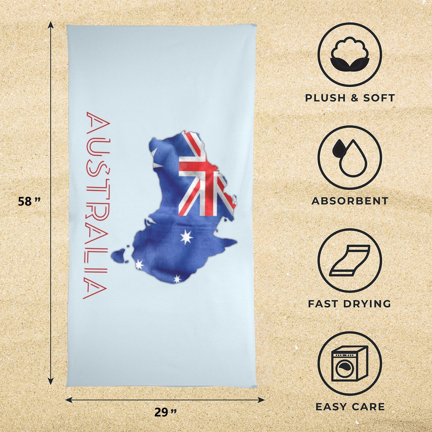 Australia Map Beach Towel 29"x58"