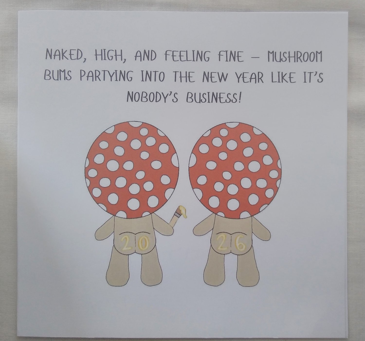 “Mushroom Bums New Year Bash: Naked, High & Feeling Fine” – Funny Adult Square New Year Card for 18+ with Matching Envelope – Perfect for Adults Only