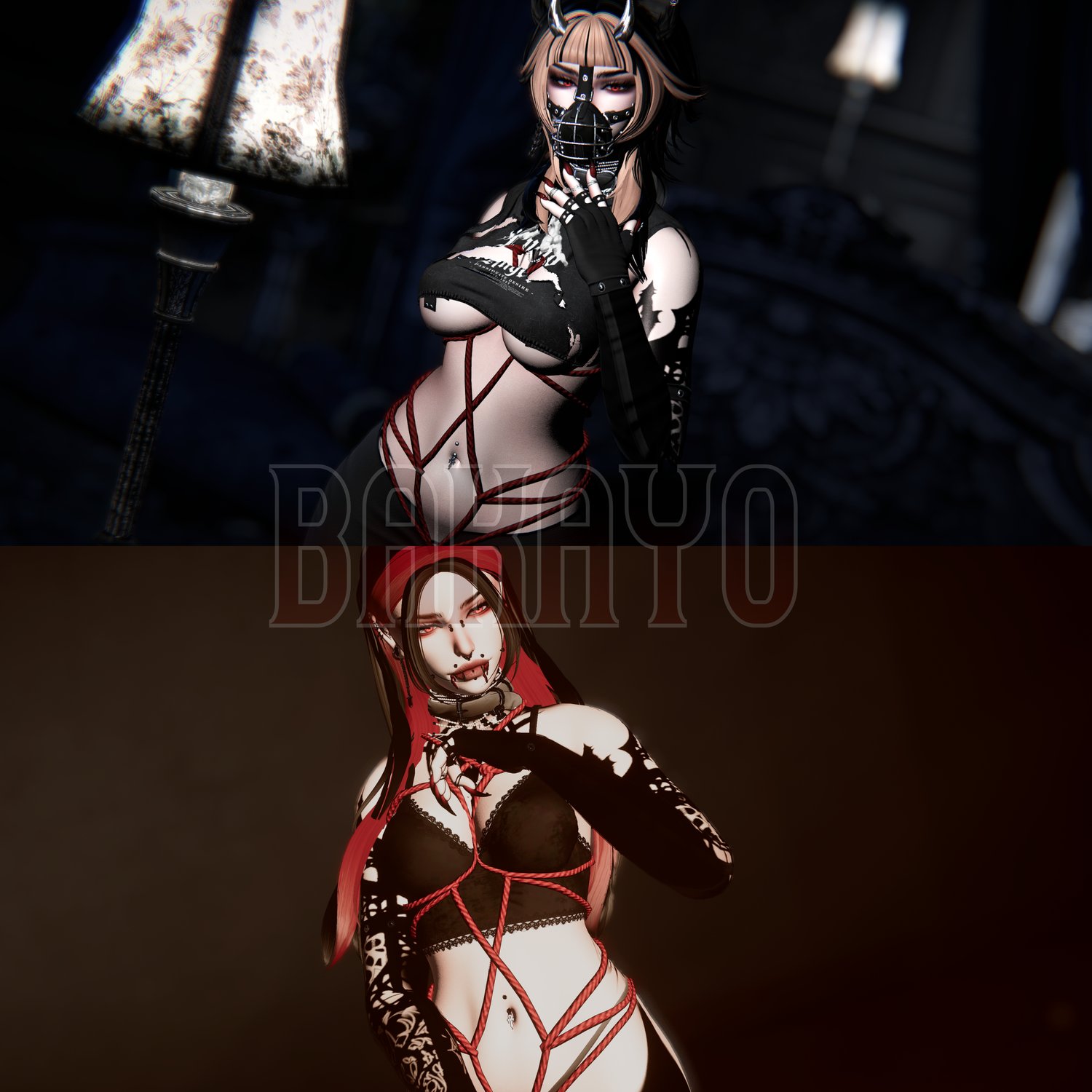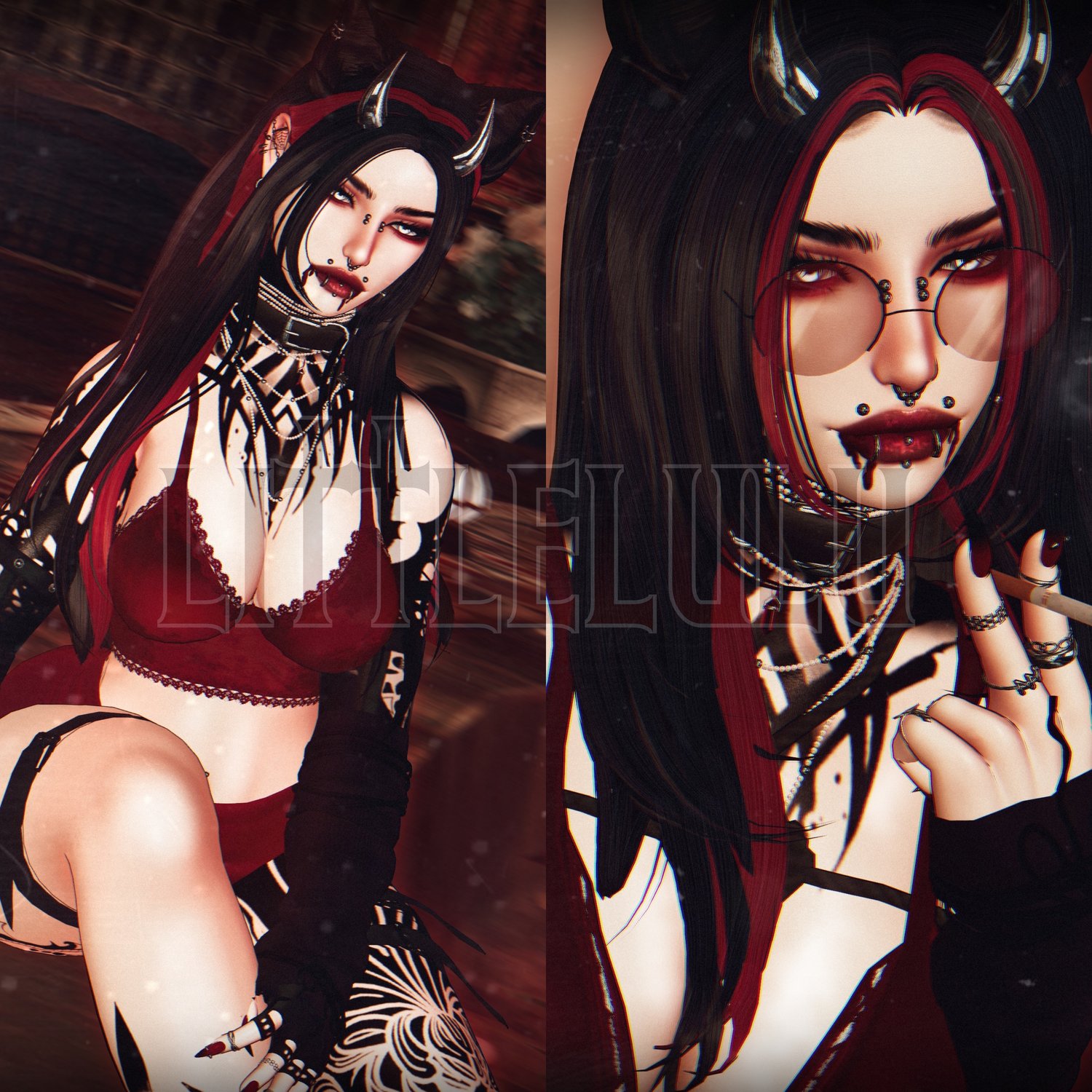 ♱ Accessories: Choker - Necklace - Rings and Bracelet - Glasses - Shibari - Individual Piercings - Horns - Leg Straps - Blood Bottle - Armwarmers - Gloves - Eyepatch - Muzzle
